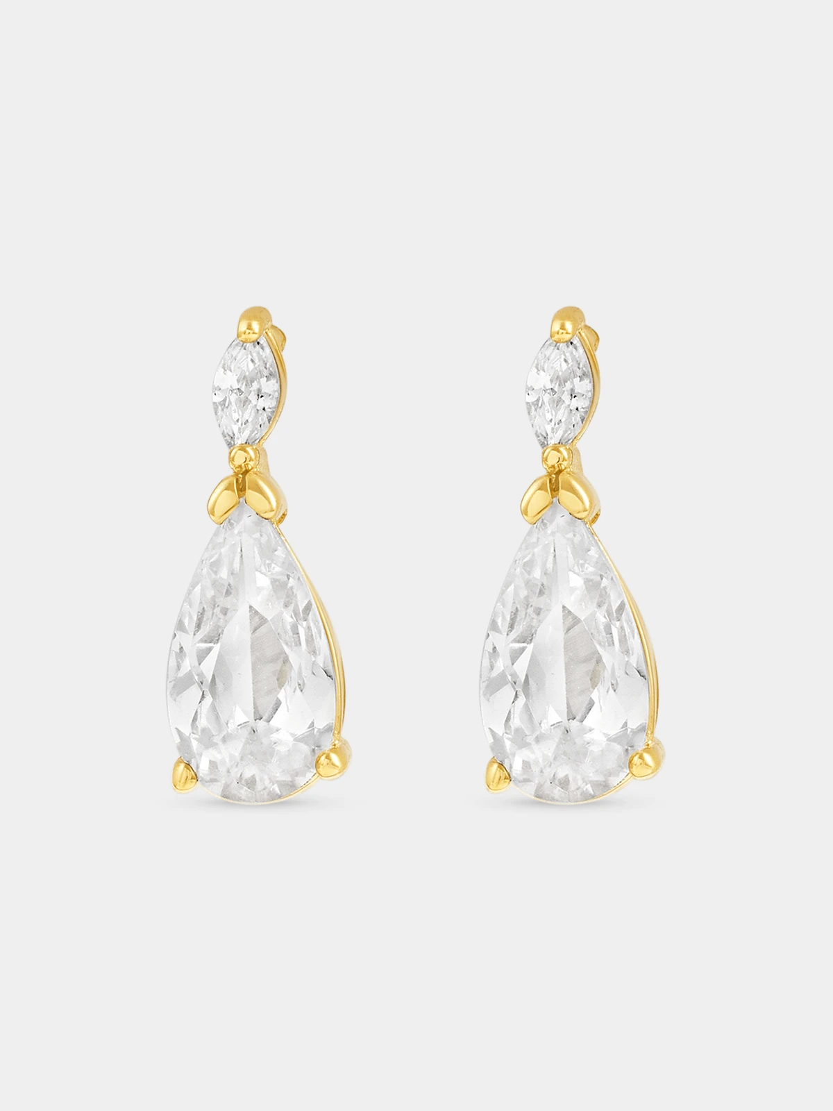 Expertly crafted in Gold Plated Sterling Silver, these beautiful drop earrings feature pear-cut Cubic Zirconia adorned by marquise-cut stones. Gemstone Cubic zirconia Dimensions 5 x 15mm Material composition Sterling Silver Fibre content SILVER Stone colour Clear Material colour Gold Plated |