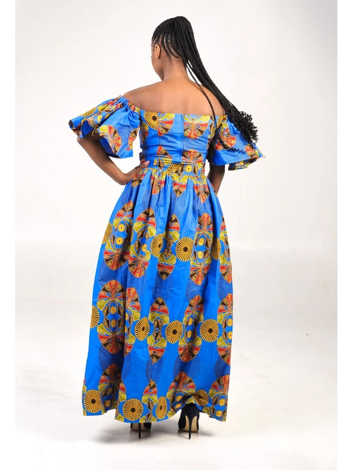 This Gyptian Off-Shoulder Dress is a Java print; the wax is used as a laminated coating over the cotton fibers to give it that nice glossy feel Guaranteed Real African print 100% cotton / 117 gr/m² Fabrics come in a standard size of 6yards (5.5mtrs) |