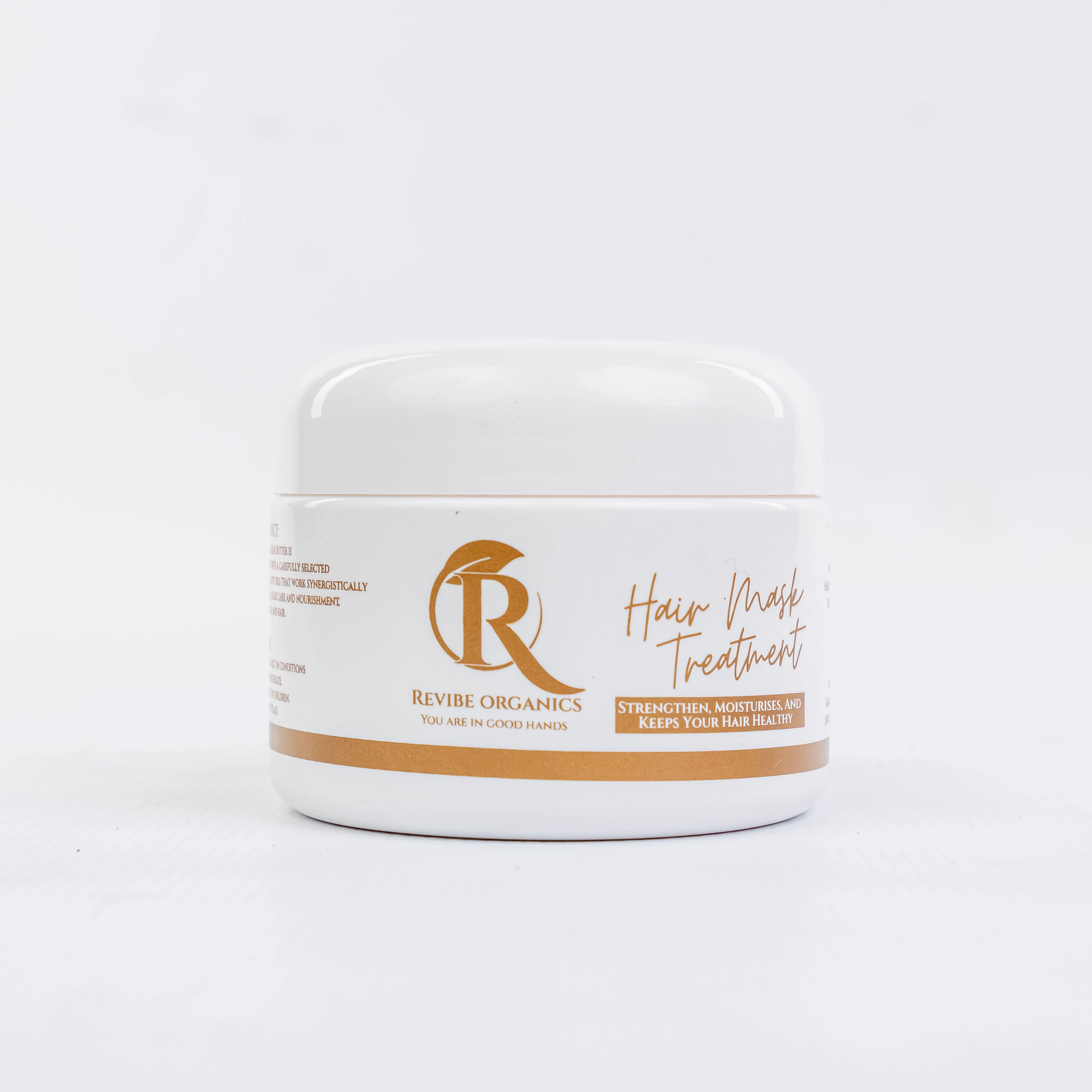 Hair Mask Treatment Size: 250ml Repair. Strengthen. Rejuvenate. Revibe Organics Hair Mask Treatment is a rich, restorative treatment designed to breathe life back into dry, brittle, or damaged hair. Infused with a luxurious blend of shea butter, aloe vera, argan oil, and rice protein, this deep-conditioning formula works to strengthen, hydrate, and repair from root to tip, while promoting a healthy, nourished scalp. Perfect for all natural hair types, this mask enhances softness, improves manageability, and helps reduce breakage without the use of harsh chemicals. A must-have for any self-care routine. How to Use Our Hair Mask Treatment