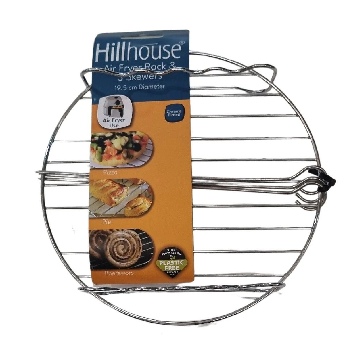 Hillhouse air fryer accessory bundle: included is a gripper clip, 3 skewer rack and a wire toast rack The hillhouse air fryer accessory bundle is the perfect addition to any kitchen looking to create delicious and healthy meals with ease. This bundle includes three essential accessories that are designed to help you cook your favourite meals in your air fryer with precision and convenience. Details: Gripper clip: - this handy accessory allows you to safely remove hot items from your air fryer without burning your hands. - it's made of durable stainless steel and has a silicone grip for added comfort. The gripper clip is easy to use and fits most air fryer sizes. Air fryer rack with 3 skewers: - this versatile rack is perfect for cooking meat, vegetables, and other foods on skewers. - the rack elevates the food, allowing hot air to circulate evenly around it for perfect cooking results. - the rack is made of stainless steel and are dishwasher safe for easy cleaning. - includes 3 stainless steel skewers -19cm long - the air fryer rack is 19.5cm in diameter, heat resistant up to 220 degrees celsius and is dishwasher safe. Wire toast rack: - this accessory is designed for making crispy toast in your air fryer. - the wire rack elevates the bread, allowing hot air to circulate around it for even toasting. - the toast rack can hold up to 8 slices - it's easy to clean and can be used for toasting bread, bagels, and more. - the air fryer toast rack is 13cm in diameter, heat resistant up to 220 degrees celsius and is dishwasher safe. With the hillhouse air fryer accessory bundle, you can cook a variety of meals with ease and precision. These accessories are made of high-quality materials and are designed to last, making them a great investment for any home cook. What's in the box 1 x Air Fryer Gripper Clip 1 x Air Fryer Rack with 3 Skewers 1 x Air Fryer Wire Toast Rack |