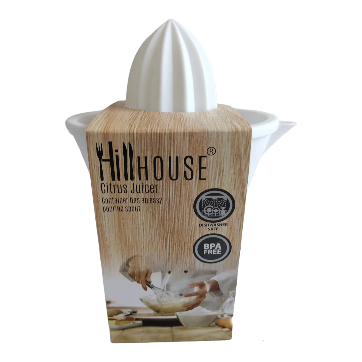 Hillhouse Manual Citrus Juicer and Container with Pouring Sprout Features: - It is very simple to use and store the Hillhouse citrus juicer. - This citrus juicer is hand-operated or manually operated, so it doesn't need electricity. It also takes up - Little room in your kitchen, making storage easy. - The Juicer/Squeezer fits over the holder which serves as a jar with a spout for simple pouring. - Plastic used in the item is BPA-free. - Additionally, it is dishwasher-safe. - Please Note this is not an electrical appliance. Specifications: - Product Measures in cm: 11(W) x 19.5(L) x 19.5(H) What's in the box 1 x Hillhouse Manual Citrus Juicer and Container with Pouring Sprout |