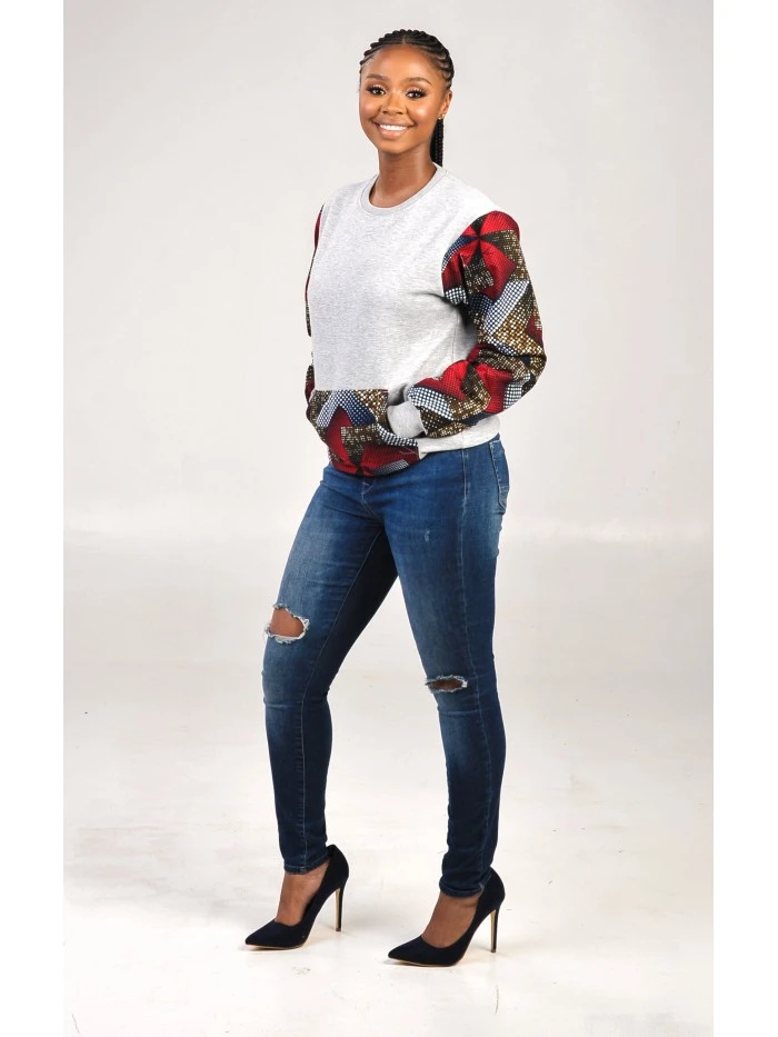 This Intersquares Pocket Sweater -Grey is a Java print; the wax is used as a laminated coating over the cotton fibers to give it that nice glossy feel Guaranteed Real African print 100% cotton / 117 gr/m² Fabrics come in a standard size of 6yards (5.5mtrs) |