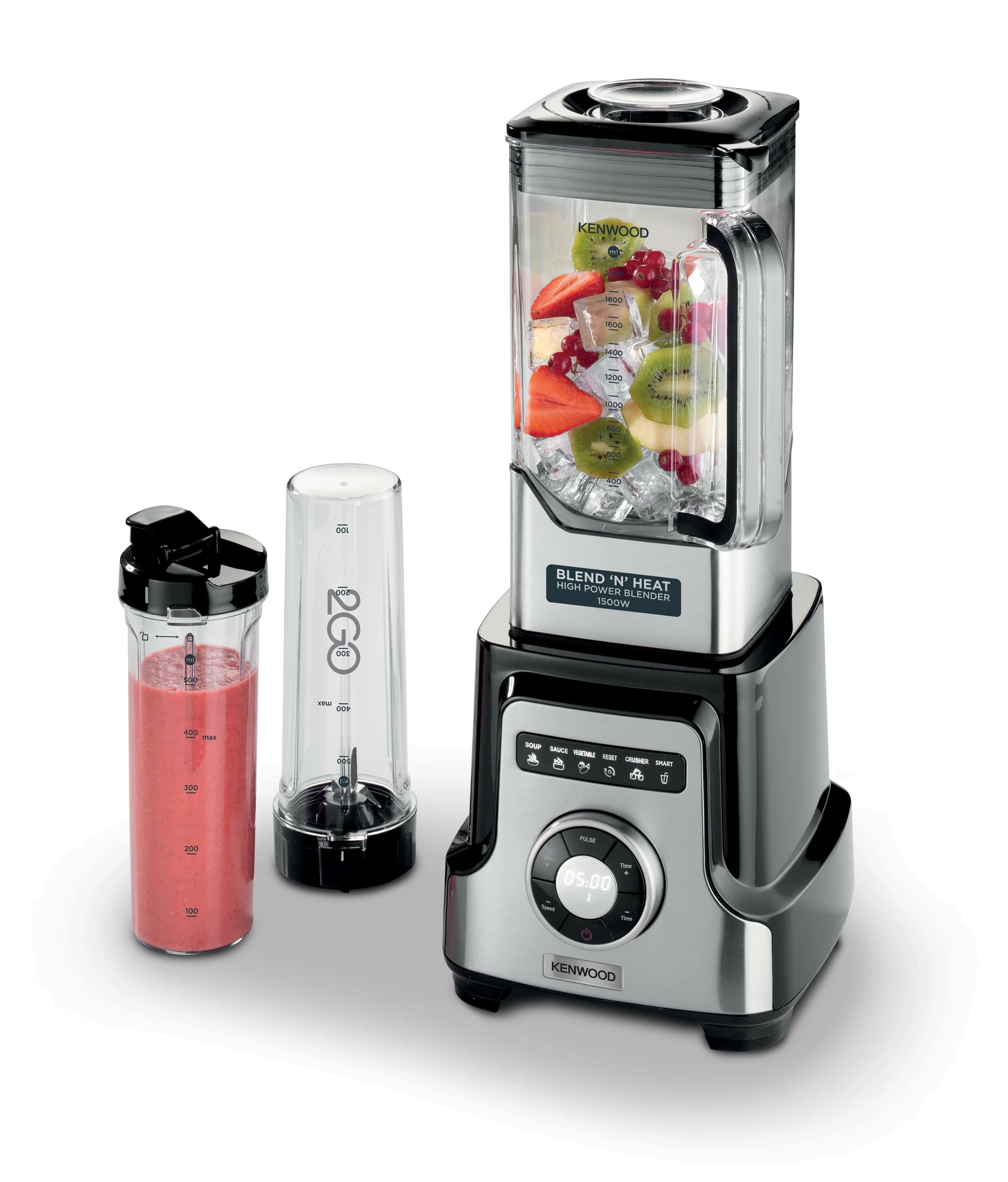 Max 32000 Rpm/Min 2 Litre jar made in tritan Bpa free 6 Programs in digital display Heats up to 80-85°C 10 Speeds and 10 min timer LED display 6 Big SS blades with advanced airflow 12 Month Warranty Kenwood Blend & Heat BLM92.920SSExperience the perfect blend of power and convenience with the Kenwood Blend & Heat BLM92.920SS. Featuring a robust 1500-watt motor and 6 sharp stainless steel blades with advanced airflow, it effortlessly blends and heats your ingredients to 85°C. The spacious 2-liter BPA-free Tritan jar lets you prepare large batches, while the intuitive LED display and 6 digital programs make it easy to create soups, smoothies, and sauces. With 10 speeds and a 10-minute timer, control and precision are at your fingertips. Stylishly finished in black and silver glass and stainless steel, this blender combines performance with elegance for your kitchen. |