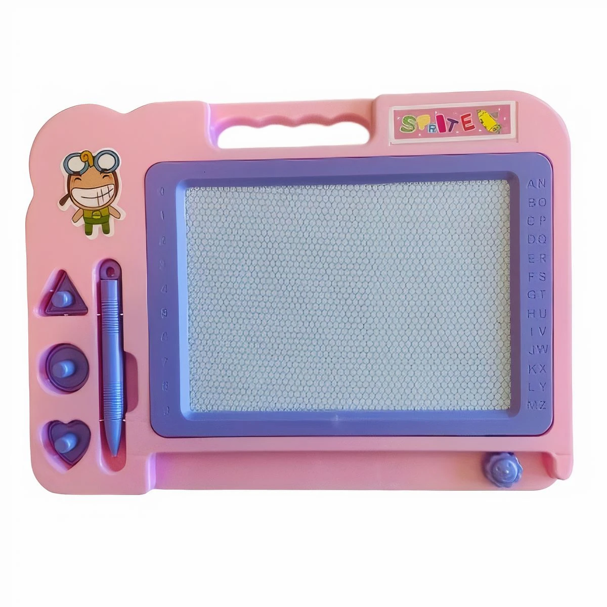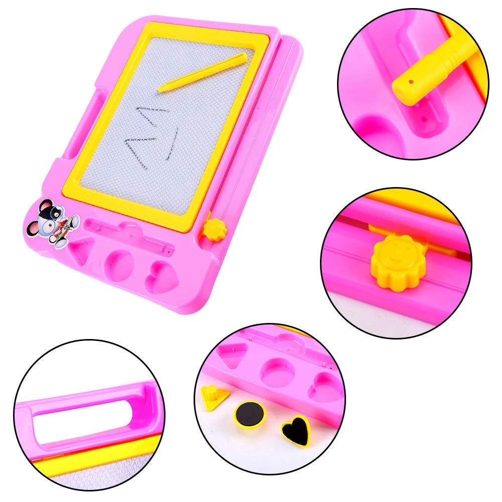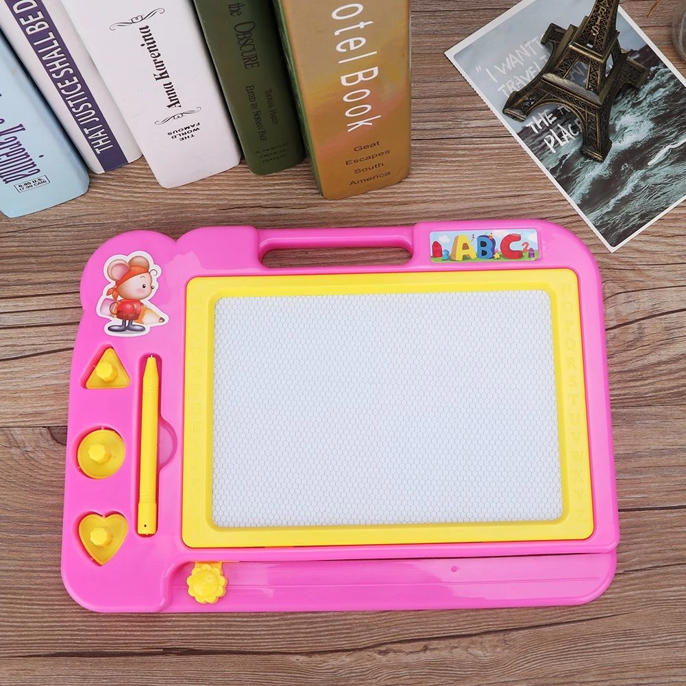 This Kiddies Writing Board is a fast & easy way for your kids to learn how to write and draw. It has a sleek and friendly design material. Made from Plastic Easily remove to start again with one slide, allowing kids to draw and create endlessly. It includes magnetic stamps. No need for pens, markers or crayons for drawing and sketching. It saves paper and pencils while improving drawing and writing skills. Handle make it easy to carry anywhere What's in the box 1 x Kids Magnetic Writing Board |