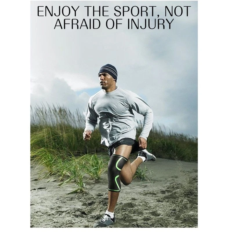 High quality 68% nylon and 32% spandex, 3D weaving technology, Soft, high elastic, breathable, won't roll, slide and slip down, 360 degrees sport protective, prevent leg muscle strain. Easy to wear and take off and provides comfortable lasting support,can be worn on either the right or left knee. What's in the box 2 x knee brace |