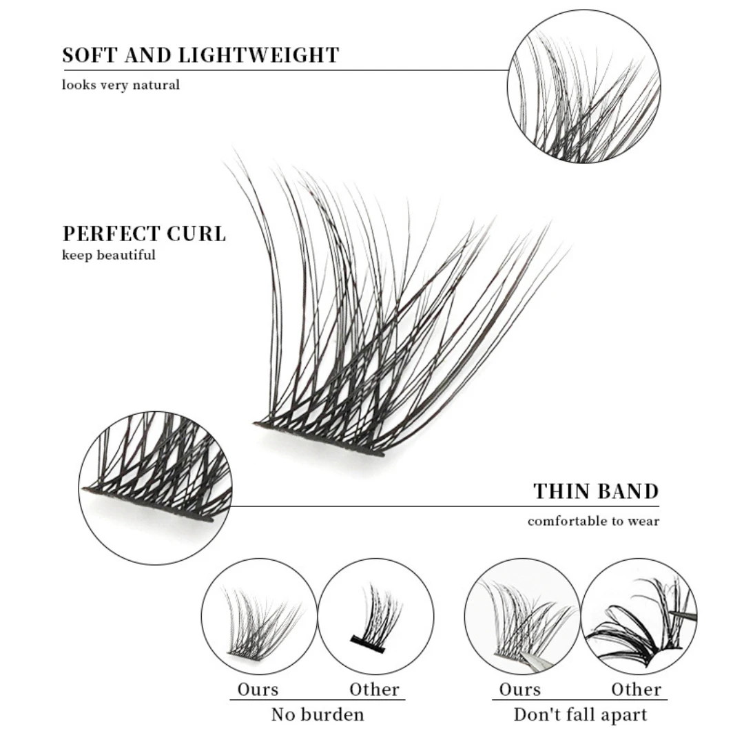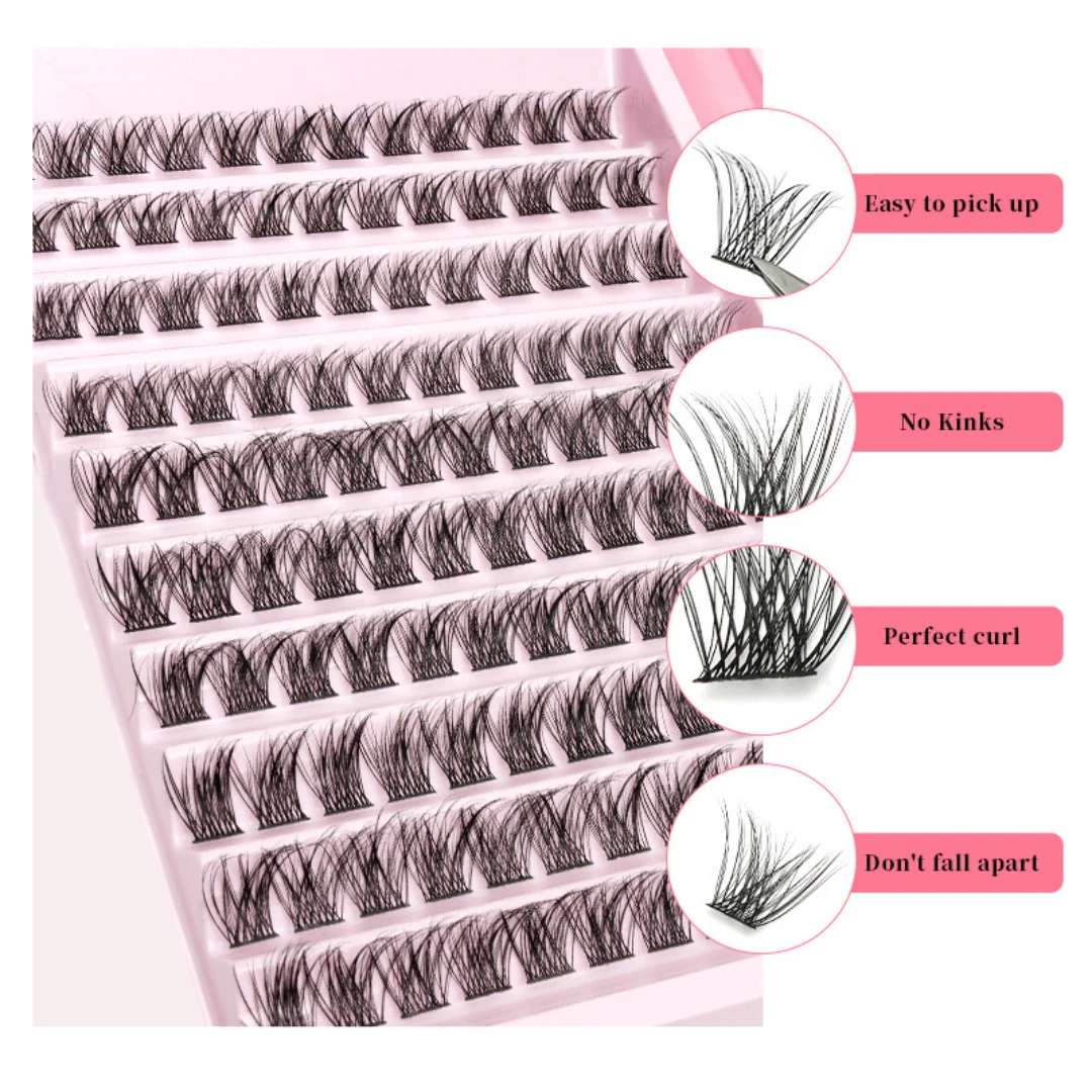 Our eyelash extension kit allows you to create beautiful lashes at home. You'll receive our eyelash extension kit in each box, which provides mixed length cluster lashes, lash bond and a tweezer. It's a must-have tool for the everyday eyelash extension beginners or enthusiast, allowing you to customize your lashes to your liking, saving you time and money. -DIY lash extension Kit: This lash extension kit includes: mixed length lash clusters,1pcs lash bond,1pcs lash tweezer. Our DIY lashes kit includes all the necessary tools. -Be Your Own Lash Queens: Our cluster lashes have different styles and lengths. You can change different styles according to your preferences, and you can easily complete the eyelashes you want at home without going to the salon. Save your time and money -High Quality Lashes: Our lash clusters are made of premium silk fiber, which is light and soft without knots. Easy to pick up and comfortable to wear. -Easy-Application Tips: 1.gentle roll the lash clusters down with TWEEZER 2.apply lash BOND on your natural eyelashes 3.place the lash clusters underneath your lashes What's in the box 1x Eyelash Clusters 1x Tweezer 1x Lash bond |