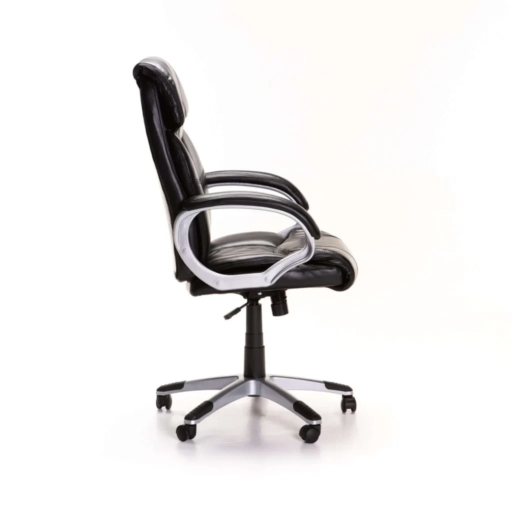 The Leather Air Luxury Executive Highback Chair CM043 offers a blend of sophistication and comfort, ideal for any professional environment. Upholstered in high-quality leather air, this chair exudes a luxurious appearance while providing durability. The high backrest ensures excellent ergonomic support, and the plush padding delivers all-day comfort. With an adjustable seat height and tilt mechanism, you can customise your seating experience. The chair's sturdy chrome base and smooth-rolling casters provide stability and easy mobility. Enhance your office with the Leather Air Luxury Executive Highback Chair, combining elegant design with practical functionality. Additional Information:Arm Material : Chrome + PU Material Back : Leather Touch Air Material Back Fill : Foam Material Base : Nylon Material Frame : Plastic + Metal Material Seat : Leather Touch Air Material Seat Fill : Foam Tilt Mechanism : Yes |
