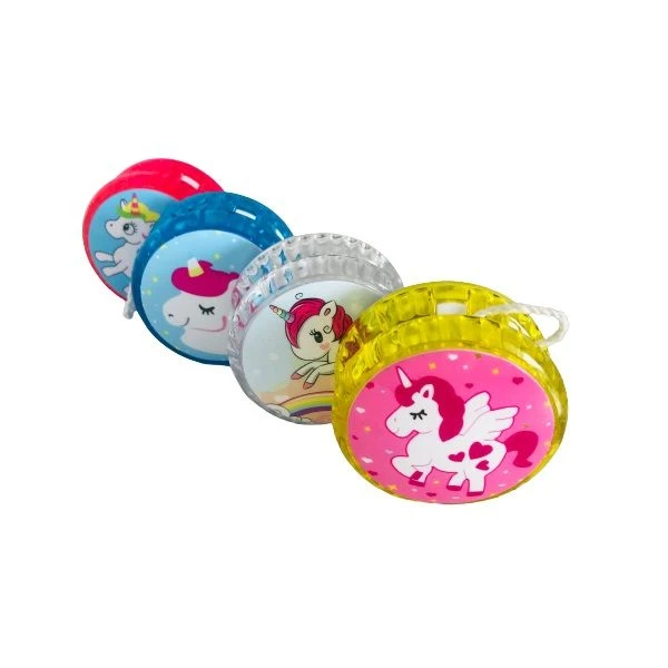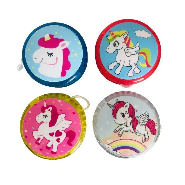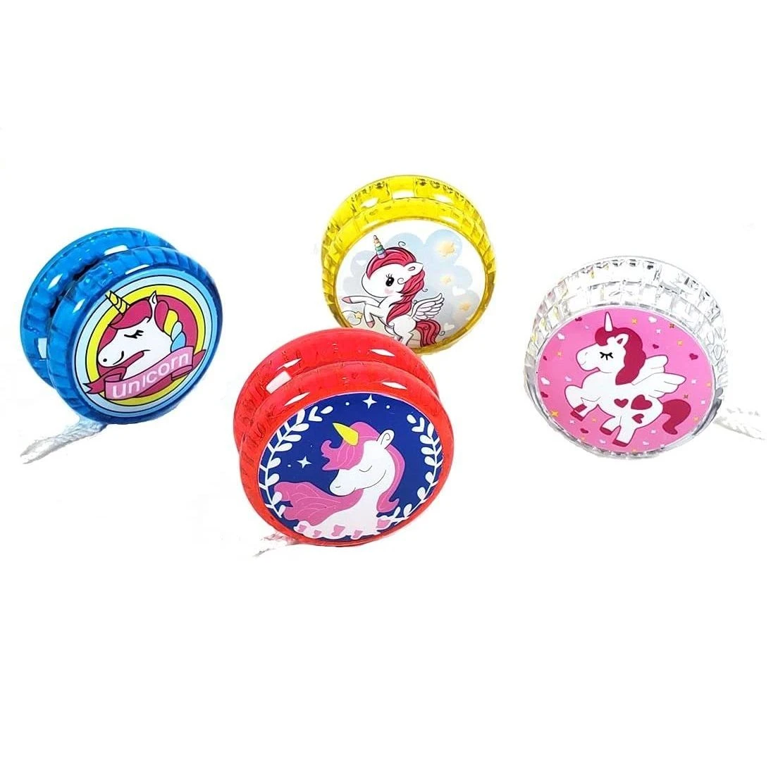 "Yo-yo's are simple yet such fun toys! Now add more to the mix with this adorable Unicorn- themed yo-yo. It will not only keep your kids busy, but they will also have great fun playing and learning new tricks. The LED lights that will glow in the dark is like icing on the cake! Perfect for birthday parties, party favors, gift bags, or Christmas Stocking fillers. Super easy to use, stable and easy to catch. Strings strong with a pre-tied loop for your finger. Size: 5.5cm each What's in the box 4 x LED Light-Up Unicorn Yo-Yo's |