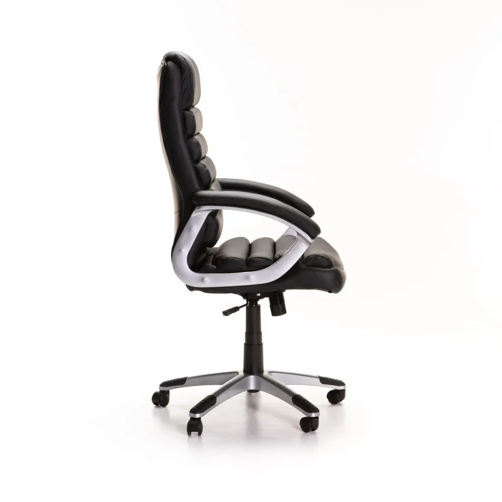 The Luxury Executive Highback Office Chair CM113 combines comfort and sophistication, ideal for any professional setting. Upholstered in high-quality Leather Touch material, this chair offers a luxurious feel and exceptional durability. The high backrest features a distinctive quilted design, adding a touch of elegance while providing superior ergonomic support and comfort during long working hours. Adjustable seat height and tilt mechanism allow for a personalised seating experience, while fixed armrests offer additional support. The sturdy chrome base and smooth-rolling casters ensure stability and easy mobility. Elevate your office with the Luxury Executive Highback Office Chair, where stylish design meets practical functionality. Additional Information:Arm Material : Chrome + PU Material Back : Leather Touch PU Material Back Fill : Foam Material Base : Nylon Material Frame : Plastic + Metal Material Seat : Leather Touch PU Material Seat Fill : Foam Tilt Mechanism : Yes |