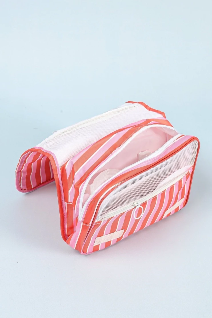 Add a pop of color to your travel routine with this vibrant, striped toiletry bag. The convenient hook lets you hang it anywhere, keeping all your essentials within reach. With multiple zippered compartments, everything stays neat and organized, so you can spend less time searching and more time exploring. Dimensions: L19xW10xH24 cm Fabric Content: 100% Polyester |