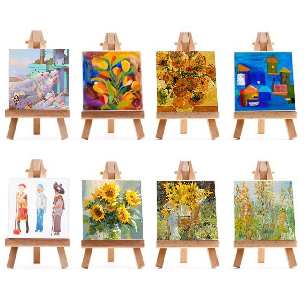 Quite small and cute, made of high-quality wood and canvas material. Come with the stand which makes it easy to paint. Suitable for kids party, picnic date, gifts for family members or friends, home decorations, displaying pictures etc. Will enjoy a lot of fun to paint. Specifications: Material: Canvas + Wooden Easel Canvas size: 10 x 10cm Easel Size: 8 x 15cm Canvas Color: White Easel Color: Wood Color Quantity:8 Sets (8x Easel and 8 x Canvas) What's in the box 8x Mini Wooden Easels 8x Mini White Canvases |