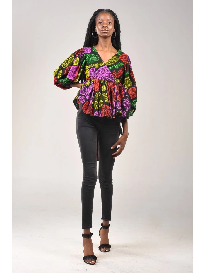 V-neck Molecular Cells Peplum Wrap Top |