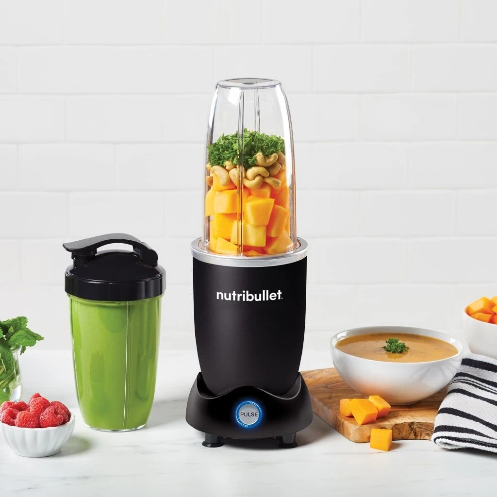 The Nutribullet that you know and love just got an upgrade! This High Speed Blender features more extraction power, convenience and functionality than the original, and is perfect for crushing and grinding even the toughest of ingredients like fresh turmeric root, blackberry, kale and more! With its 1200W motor and pre-programmed pulse cycle, you can whip up silky smooth smoothies and control the consistency of chunky textures, like salsas. Plus, it shuts off automatically after optimum extraction, thanks to the hands-free auto shut-off function. What's more, it comes with 2 cups and 2 mess-free resealable lids for on-the-go convenience. Features - High-Speed Blender - More power - 1200 Watts of power (double the original Nutribullet) - this means better nutrient extraction while taking up the same amount of countertop space - The 1200W motor nutrient extractor uses patented technology to transform nutrient-dense greens, vegetables, fruits, nuts, seeds, and other healthy foods into silky-smooth, super-portable NutriBlast smoothies - Perfect for pulverising the toughest of ingredients like fresh turmeric root, blackberry seeds, wheat grass, kale and more - Pre-programmed pulse cycle - provides the right consistency for chunky textures like salsas - Hands-free auto shut-off and 60-second blend time - shuts off automatically after optimum extraction - Simple, intuitive design makes this a device you'll use every day - On-The-Go Convenience - comes with the easy, mess-free, resealable to-go lids for busy lifestyles Specifications Power: 1200W Cord Length: 1m Capacity: Tall cup: 710ml Colossal cup: 945ml Material: Body: Plastic Blades: Stainless steel Cups: BPA-free plastic What's in the box 1 x 1200 Watt motor base 1 x Extractor blade 1 x 945ml cup 1 x 710 ml cup 2 x cup rings 2 x To-Go lids 1 x User guide |