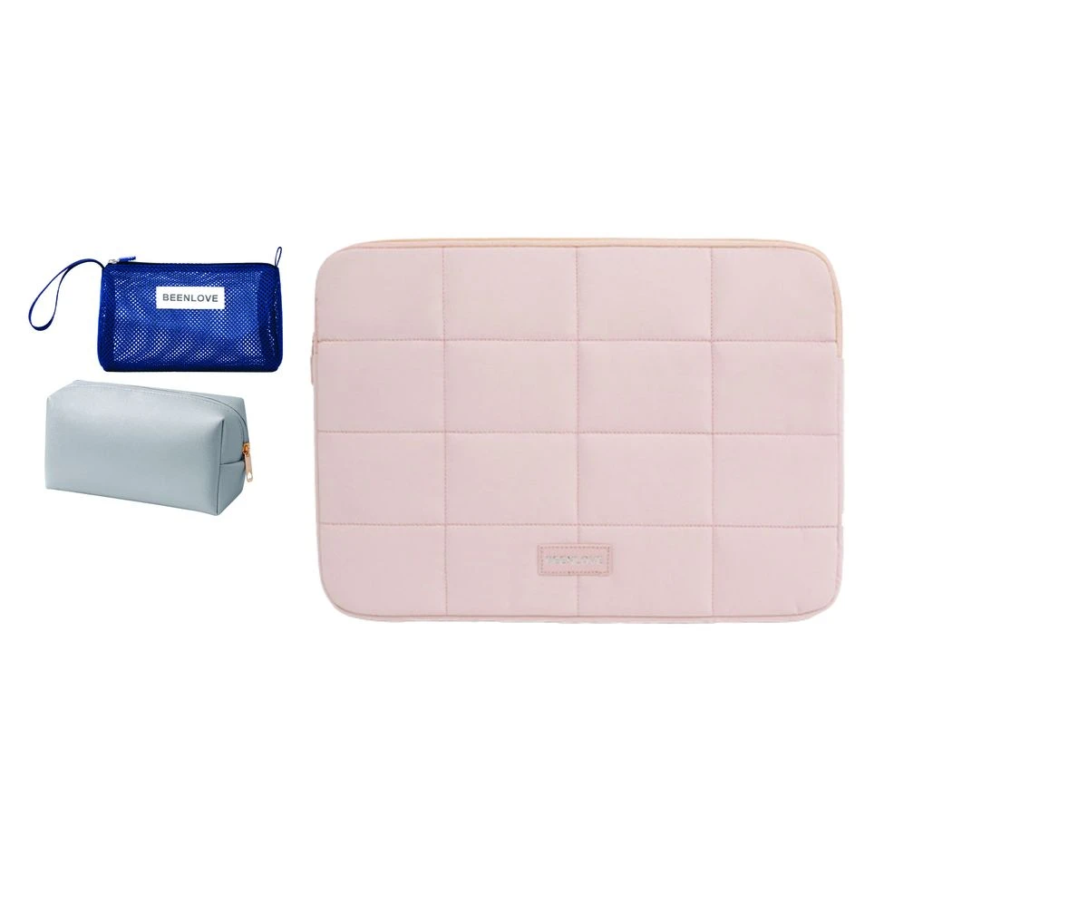 Crafted with a highly durable, waterproof exterior, this sleeve safeguards against unexpected spills, rain, or dust while maintaining a classy, quilted pink design. Not only does it enhance device safety wherever you go, but it also brings contemporary style to your work or study accessories, complementing any handbag or backpack Crafted with a highly durable, waterproof exterior, this sleeve safeguards against unexpected spills, rain, or dust while maintaining a classy, quilted pink design. Not only does it enhance device safety wherever you go, but it also brings contemporary style to your work or study accessories, complementing any handbag or backpack laptop sleeve features thick, shock-absorbing padding engineered to shield your device from bumps, drops, and impacts during commute or travel. Superior cushioning keeps your laptop safe while preserving its sleek profile. Ideal for professionals, students, and anyone needing trusted device protection. Experience ease of use with RarePicks' reinforced zippers, built for convenience and longevity. The smooth-glide zips make accessing your laptop quick and hassle-free. Sturdy zipper construction promises lasting performance, keeping your device secure inside for journeys to work, college, or anywhere in between. What's in the box 1 x Laptop bag 1 x Cosmetic bag 1 x Toiletry bag |