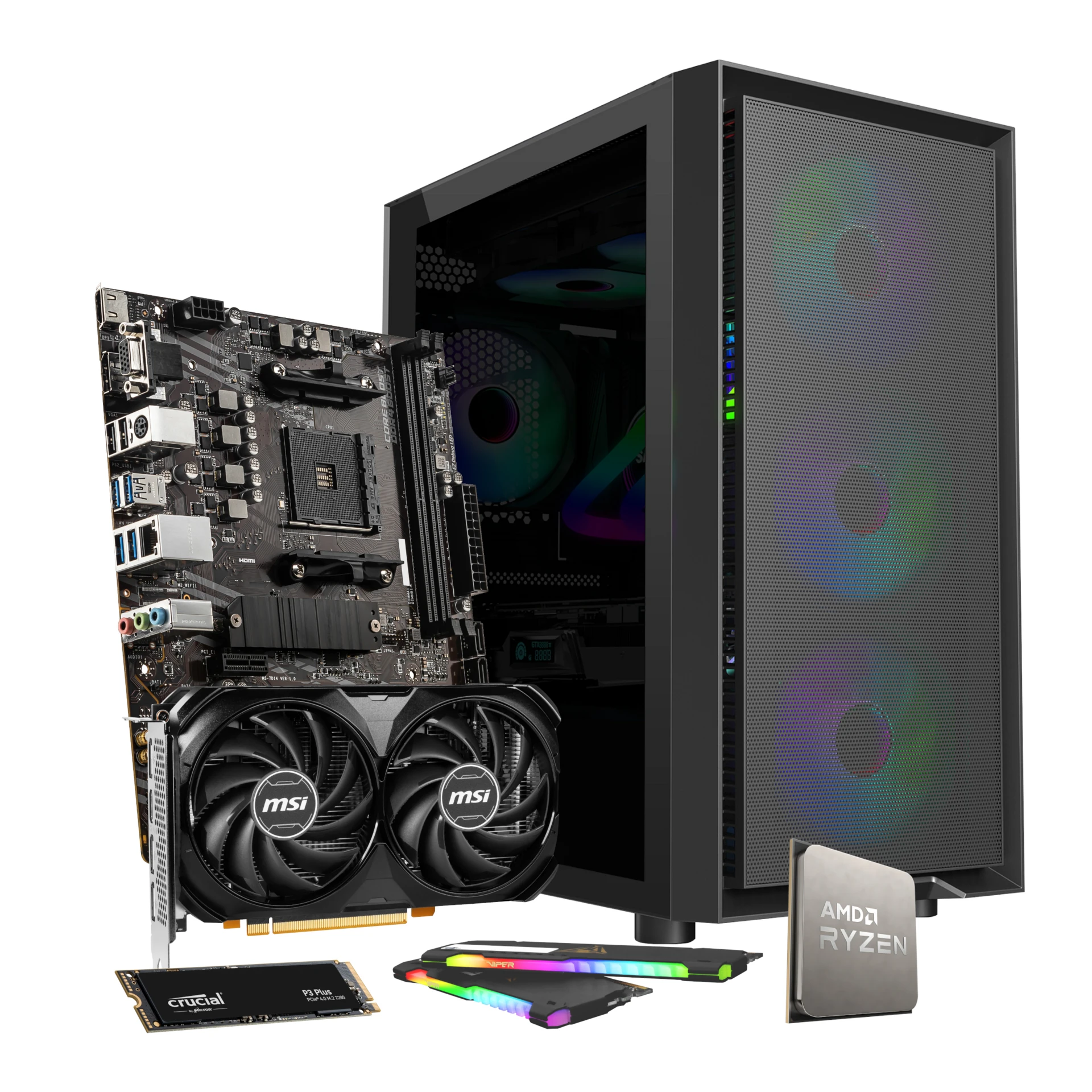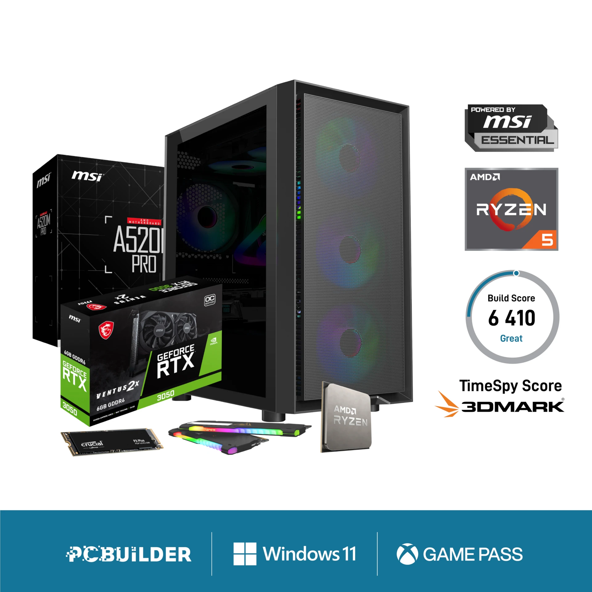 AMD Ryzen 5 5500 6-core CPU MSI A520 chipset AM4 mATX board Patriot DDR4 3600MHz 16GB RAM MSI GeForce RTX 3050 6GB GPU Crucial 1TB Gen3 NVMe SSD 550W modular power supply unit PCBuilder PROTECTOR gaming case 2 Year Warranty PCBuilder AMD Ryzen 5 5500 SCOUT Windows 11 Gaming PCThe PCBuilder AMD Ryzen 5 5500 SCOUT Windows 11 Gaming PC is a high-performance gaming rig designed for speed, power, and immersive gameplay. Powered by the 5th generation AMD Ryzen 5 5500 processor with 6 cores and speeds up to 4.2GHz, it delivers smooth multitasking and responsive gaming performance. Equipped with 16GB of high-speed Patriot DDR4 3600MHz memory and an MSI 6GB RTX 3050 graphics card, it ensures stunning visuals and seamless gameplay on titles like Call of Duty: Modern Warfare 3, Diablo IV, and Forza Horizon 5. Storage is handled by a spacious 1TB Crucial NVMe SSD for ultra-fast load times, while the 550W power supply guarantees reliable performance. Housed in the sleek PCBuilder PROTECTOR mATX chassis with a tempered glass side panel, this gaming PC combines style with functionality. It comes pre-installed with Windows 11, offering features like Snap Layouts, Desktops, Widgets, and Microsoft Edge for enhanced productivity. The SCOUT also includes one month of PC Game Pass with EA Play for access to over 100 PC games and a 1-year Norton 360 Deluxe antivirus subscription for comprehensive protection. Built in-house by experienced technicians, each system is carefully packaged and comes with a 2-year warranty, ensuring a ready-to-game, worry-free experience from day one. |