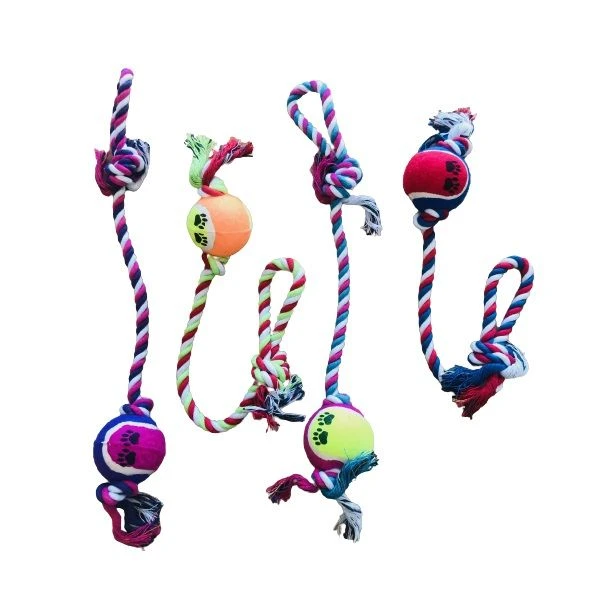 Only the very best for you furry friends. The perfect toy for dogs that enjoy games of tug-and-pull and can do with a durable toy to chew once in a while. Fun to toss, chew and fetch, the toy provides hours of healthy play for you and your pet. Regular chewing gently cleans teeth and massages gums, reducing plaque build-up and preventing gum disease. Made from biodegradable materials, it is machine washable. Size: 50cm each What's in the box 4 x Pet Rope And Ball Tug Toys |