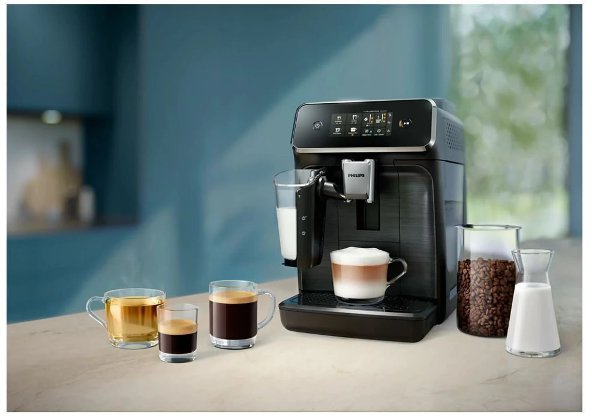 Enjoy 4 popular coffee recipes LatteGo fast to clean milk system 40% Quieter with silent brew 5000 cups without descaling Hard-wearing ceramic grinder Touch screen display with colored icons Easy instructions with HomeID App The easiest way to enjoy fresh bean coffeesEnjoy 4 drinks in one touch, with the perfect crema, aroma, and temperature. LatteGo automatically prepares silky smooth milk froth for your milky coffees, is easy to set up, and can be cleaned in as little as 10 seconds*. |