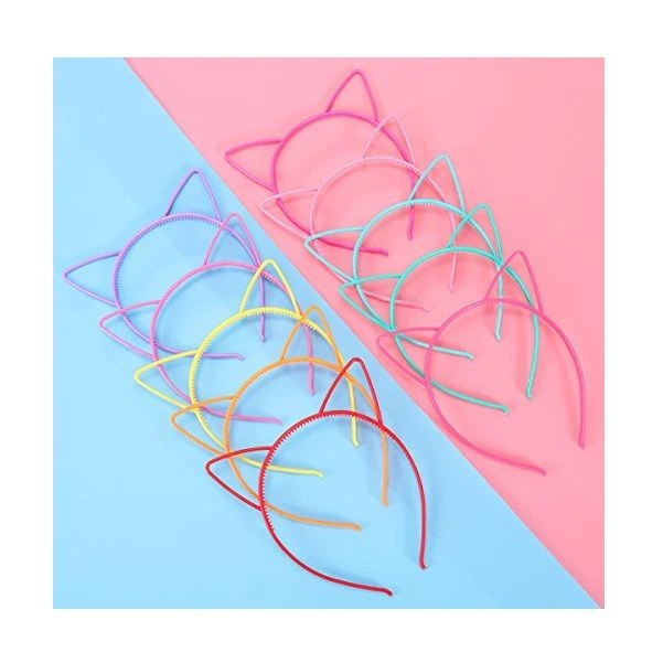 Plastic headbands in cute colours. With comb teeth to better secure the hair. Ideal for parties, dress-up games, Halloween & Cosplay. Plastic with non-slip teeth on the inner curve, prevent it from slipping on the head/hair Flexible to fit kids and adult heads What's in the box 3 x Plastic Cat Ears Alice Bands |