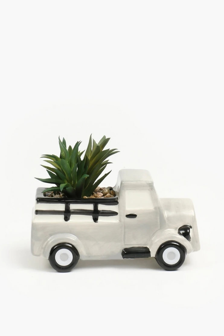 This artificial plant potted in a cute novelty bus is a fun decorative addition for a child's room. |