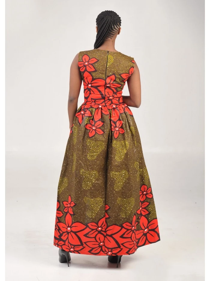 This Red Petals Sleeveless Dress is a Java print; the wax is used as a laminated coating over the cotton fibers to give it that nice glossy feel Guaranteed Real African print 100% cotton / 117 gr/m² Fabrics come in a standard size of 6yards (5.5mtrs) |