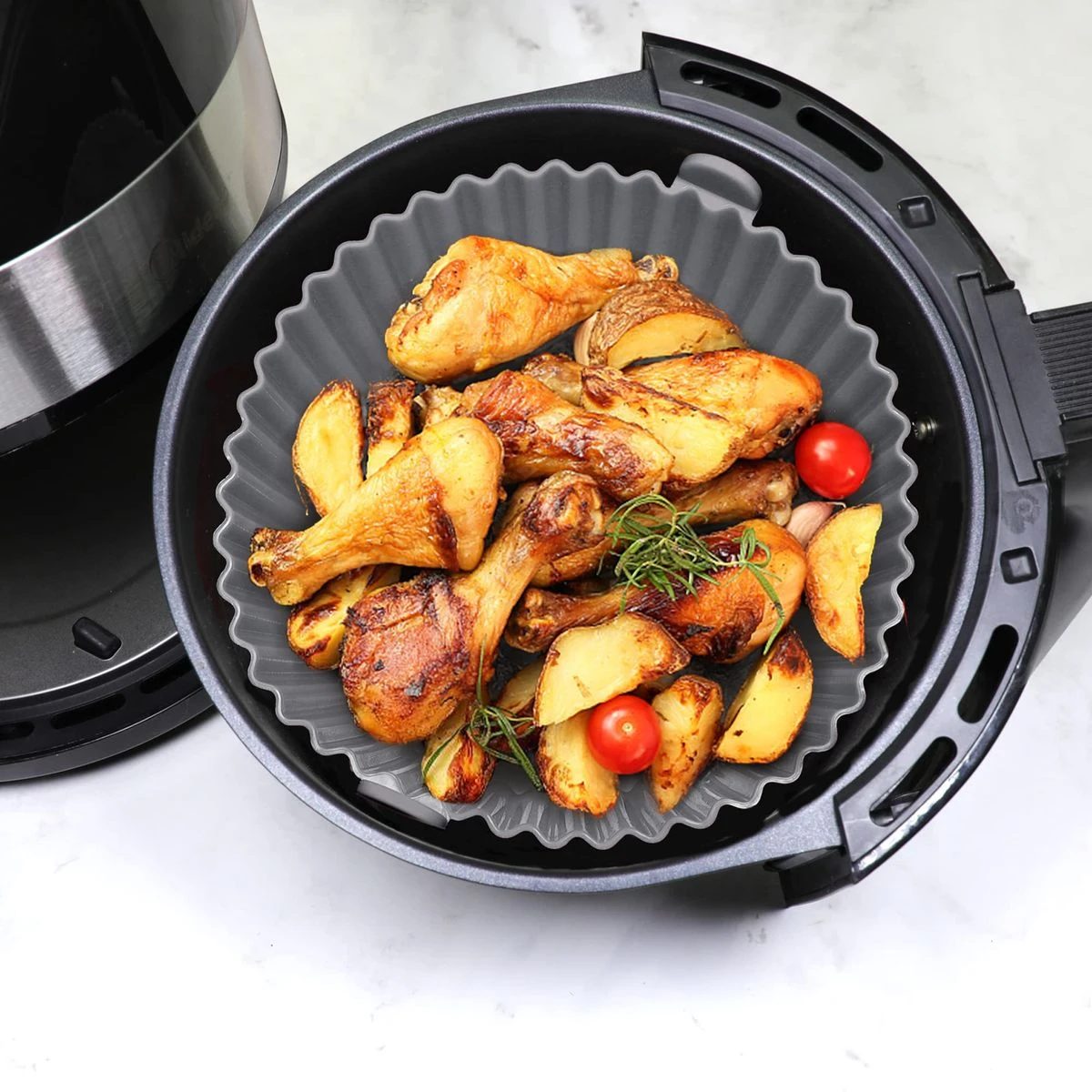 This Silicone Air Fryer Liner is perfect for reuse and easy cleaning. Pop it in your air fryer and simply clean it when done. The inner pot of these non-stick disposable air fryers is designed in the shape of a round bowl that doesn't need to be, folded, cut, or bent like paper air fryer liners and can be dropped right in when you're ready to cook. The raised edges protect the sides of the fryer and food from sticking to them and ensure that no delicious juices are lost or messed in the air fryer Features: - High-temperature resistance, up to 240 degrees Celsius - Handles for easy handling - Easy to clean - Re-usable - Non-stick - Non-toxic and odorless - Saves time and effort cleaning up - Dishwasher safe - It is suitable for an air fryer, microwave, oven, steamer, cooker, etc Specifications: - Material: Silicone - Size Base:18cm - Size Top: 20cm What's in the box 4 x RevUp - Washable Air Fryer Silicone Floppy Liners Grey |