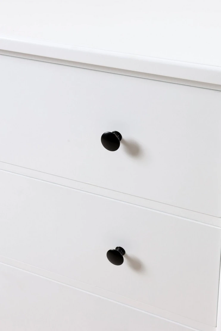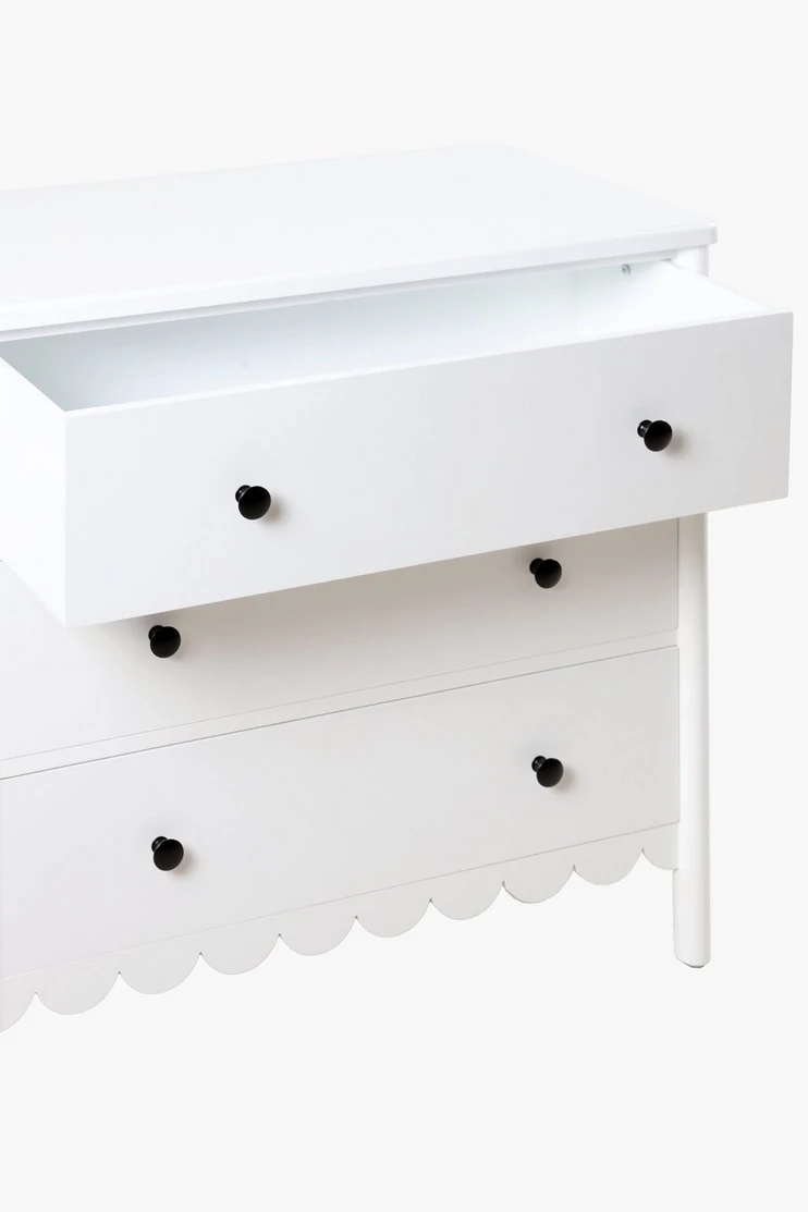 This 3 drawer unit is a stylish choice for a modern room settiing finished in Duco White. The scalloped design element adds a timeless look.