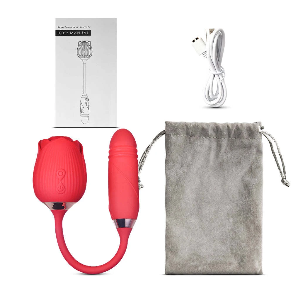 Delicate Thrills: Silicone Clitoral Sucking Rose with Thrusting Vibrator Egg for Intense StimulationThe famous TikTok raved sucking rose sex toy has a new addition! The Rose II Vibrating Clitoral Stimulator and Vibrating Thrusting Egg is the newest sensation in adult pleasure! Unique & Elegant Rose Design – The vibrator consists of a rose-shaped suction and an egg-shaped vibrator. This Rose will be a girl’s best friend and with with benefits! Just like the original, the soft, supple and powerful sucking rose arouses your clitoris. While the thrusting phallic egg takes care of vagina penetration for a dual stimulating sensation. Use all 10 functions of vibration and sucking action to find which one makes your pussy happy! Waterproof for play around water. Just a quick note, please make sure you use only water based lubricants with its silicone and ABS materials. This sex toy is, easy to charge thanks to the USB magnetic connect. Details: Material: Body safe silicone Colour: Red Vibration: 10 Speeds Thrusting: Yes Battery: Rechargeable Recharging Method: USB Port ( Magnet connection with the adult toy ) Length: 38 CM Egg Diameter: 5 CM Waterproof: Yes Packaging: Retail box, sealed Packing List: 1 x Silicone clitoral stimulator sex toy 1 x USB recharging cable 1 x Instruction 1 x Bag |