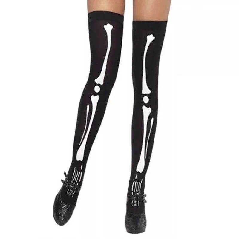 Ideal for your next Halloween or Horror themed fancy dress event, these skeleton print black thigh high stockings for women are an ideal finishing touch to your skeleton outfit! What's in the box 1 x Thigh High Halloween Stockings |