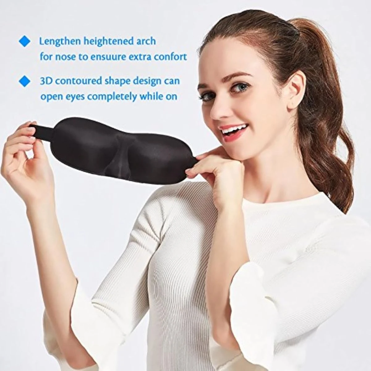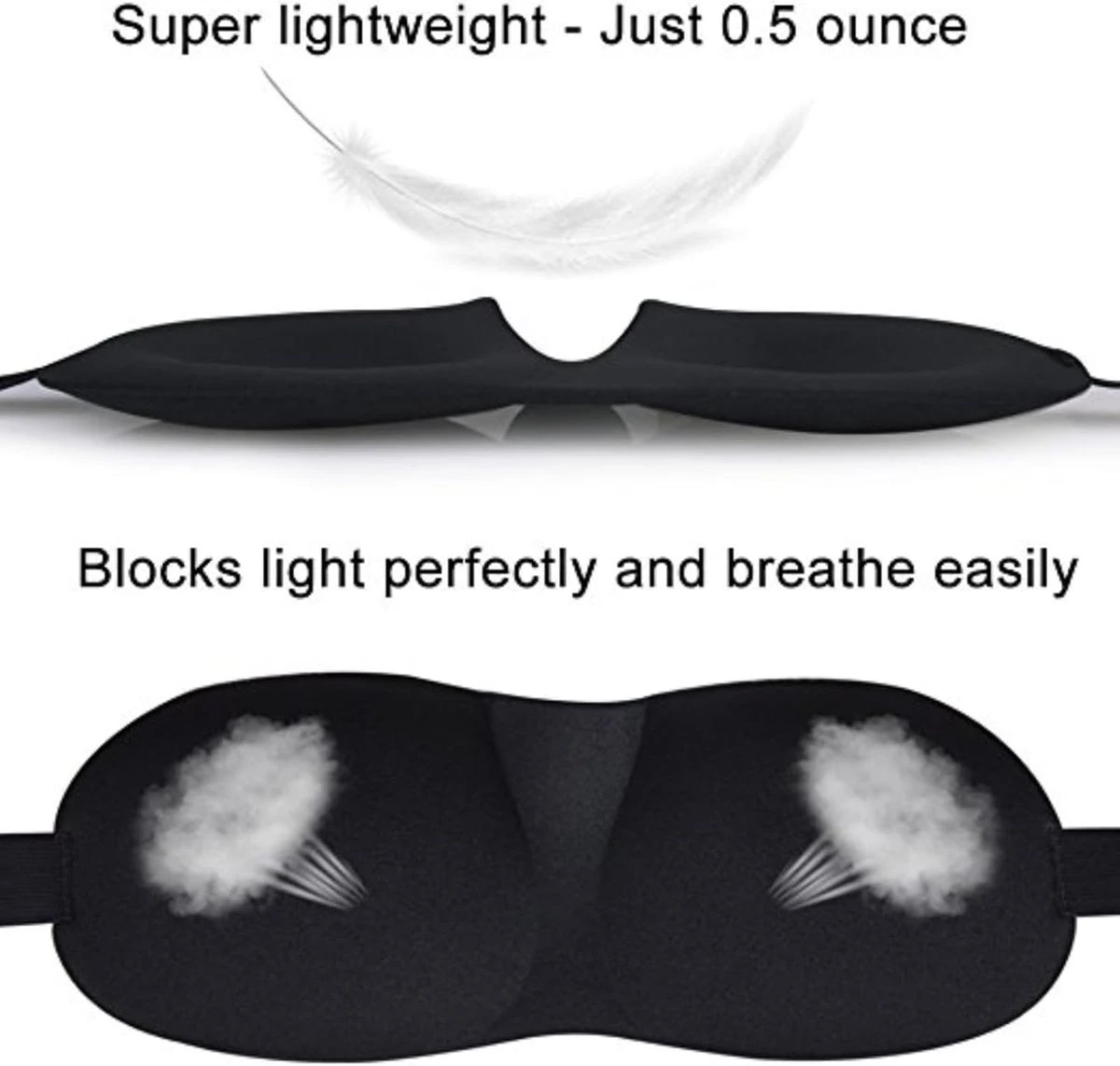 Use memory foam materials and super soft fabric. It's very lightweight, friendly breathable fabric is comfortable to wear.sleep mask has Fade-proof function. Made of high-quality polyester fabric. It will block out light from your sleep, making you sleep faster and deeper every night. Sleeping Mask Has a unique wavy appearance with a protective curve feature and a 35 uplift design of orbital parts, and the orbital depth is 2cm, which has zero pressure to eyes, promoting sleep. Wear without disturbing your makeup, specially designed for female eyelash makeup. Suitable for all size head circumference, adjustable buckle strap, easy to adjust, will not grab hair, suitable for a long time matching. These sleep masks are not only practical but also a great gift idea. With their unique design and functionality, they'll love them. Sleep mask 3D Contoured Eye Mask for Sleeping applies the combination of high-density green sponge and elastic cloth. It has long service life and is resistant to wear. It conforms to human engineering design well and perfectly fits with faces of almost all people.wing makes your sleeping mask not be easily moved so as to cause the light leakage. and it is suitable for different sleep modes of all users. The sleep mask is ideal for blocking out all light. It can soothe and relax your eyes, helping you fall asleep faster and improving your sleep quality. Lightweight, breathable, and soft, it fits over your nose, keeping your eyes closer, but reducing eye pressure, which is beneficial for your health. What's in the box 1 x Sleep mask |