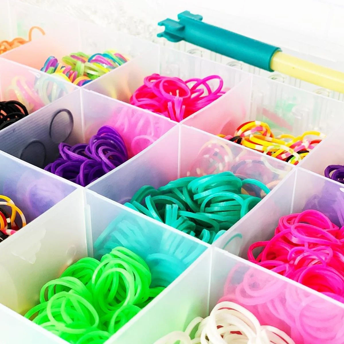 "This refill bracelet-making kit encourages creativity and social interaction. Boys and girls can make trendy bracelets and give them as a gift to friends or trade it. Recommended by professionals This rubber band bracelet-making kit helps children identify colours, exercises children's hand-eye coordination and hands-on ability, enhances the precision of hand movements, and cultivates children's patience and concentration. It utilizes colour matching and ever-changing ornaments to stimulate a child's creative thinking and feel a sense of accomplishment. Top-quality and safe Our bracelet bands are durable, bright, and colorful. The individual rubber bands have great elasticity, resilience, making them less likely to tear. They are also lead-free, BPA free, and phthalate-free. Portable storage organizer Our bracelet set is stored neatly in a see-through plastic carry box, allowing children to carry it to school, pool, park, Montessori, daycares, libraries, travel or around the home! It's a great solo or collaborative group activity. The rubber band bracelet-making kit allows children to interact with others, improving children s social relationships and building friendships. Best gift for kids It's the perfect birthday gift and Christmas present for kids. They can loom lots of unique wearable gadgets such as rubber friendship bracelets, hair accessories, necklaces, rings, beads, charms, etc. The creative possibilities are endless. Rubber hair tie arts and crafts allow parents and children to bond and fortify a healthy relationship. Simultaneously, it helps the child to develop dexterity, imagination, and physical and cognitive strength. Includes: 1 x stacker 3 x crochet hooks 8 x plastic hooks 600 x rubber bands What's in the box 1 x Stacker 3 x Crochet Hooks 8 x Plastic Hooks 600 x Rubber Bands |