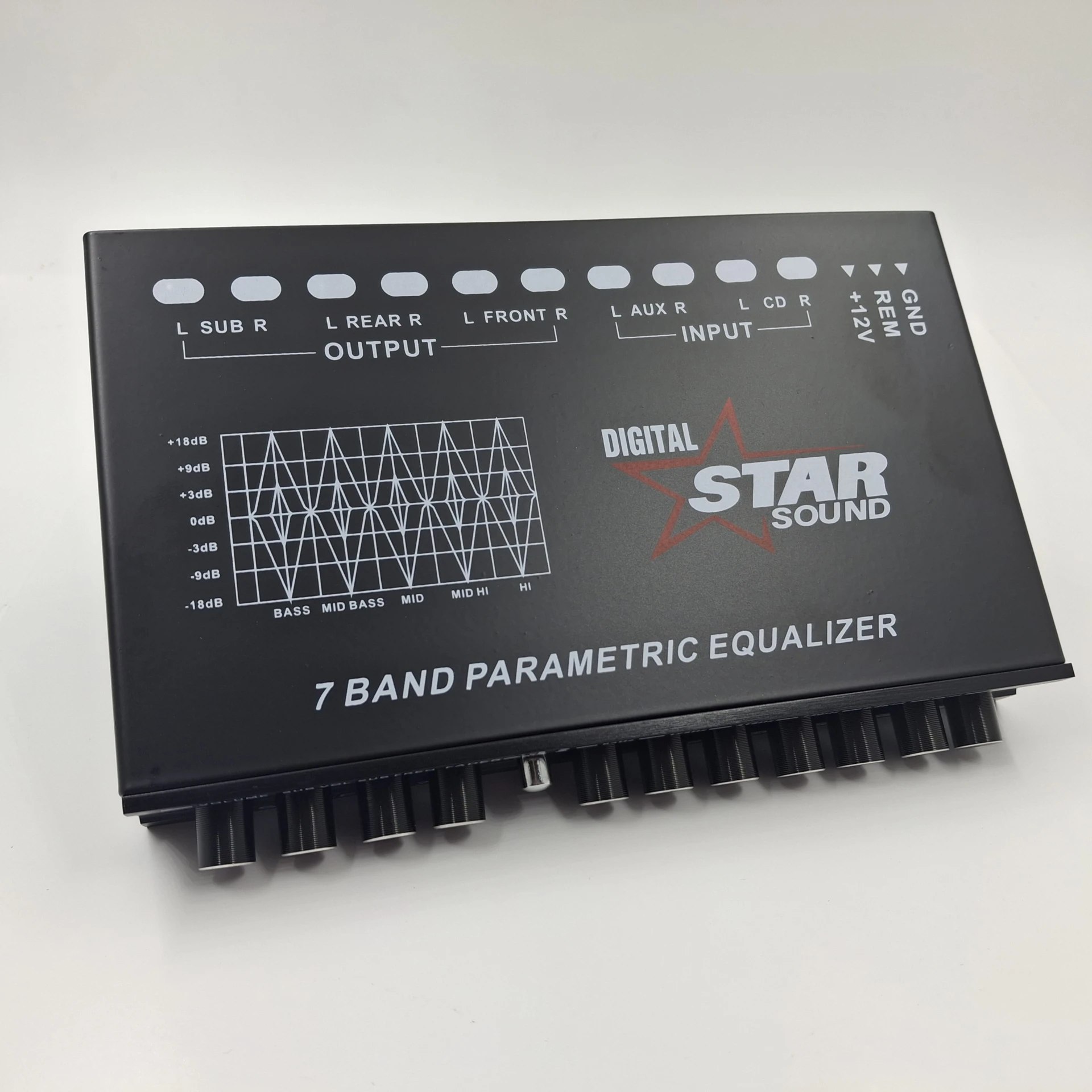 7 Band equaliser with 5V output Maximum output: 5V Sensitivity: 70Db Input sensitivity: 1.5 - 1.6V Impedance: 10K Ohm Frequency response: 15 Hz to 30 Hz 1 Year Warranty Starsound 7 Band Parametric Equaliser SSA-EQ-7200The Starsound SSA-EQ-7200 7-Band Parametric Equaliser gives you precise control over your car audio system, allowing fine-tuning across multiple frequency bands for optimal sound performance. Its intuitive design makes it easy to adjust levels, ensuring your music sounds exactly how you want, whether boosting bass, mids, or treble. Compact yet powerful, this equaliser is ideal for enthusiasts looking to enhance clarity, balance, and overall audio quality in their vehicle’s sound system. |