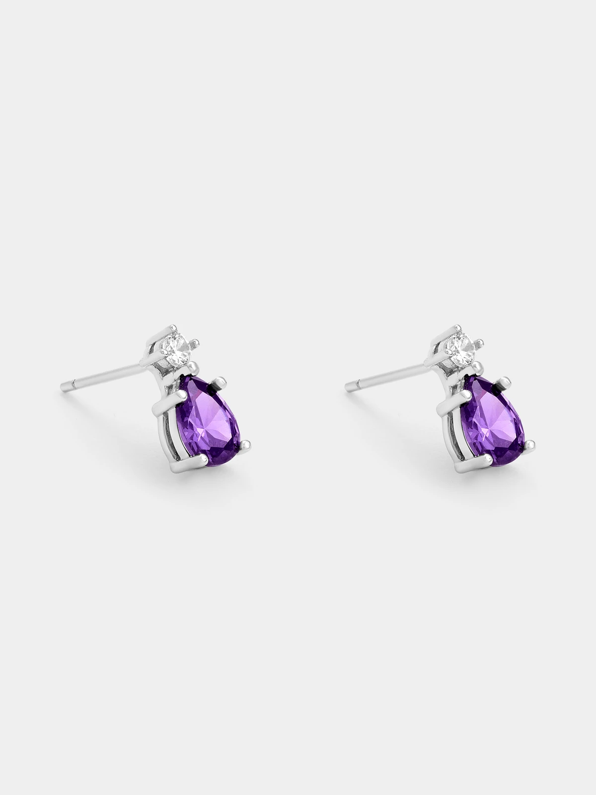 Expertly crafted in Sterling Silver, these beautiful stud earrings feature pear-cut amethyst-coloured Cubic Zirconia adorned by round-cut white stones. Gemstone Amethyst Dimensions L11mm x W5mm x H4mm Material composition Sterling Silver Fibre content SILVER Stone colour PURPLE Material colour Rhodium Plated |