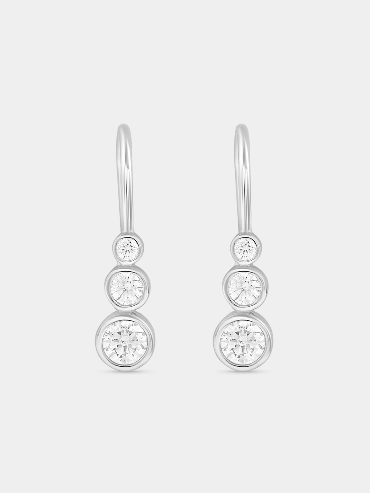 Expertly crafted in Sterling Silver, these beautiful drop earrings feature a trilogy of round-cut Cubic Zirconia in bezel settings. Gemstone Cubic zirconia Dimensions 5.4 x 19.5m Material composition Sterling Silver Fibre content SILVER Stone colour Clear Material colour Rhodium Plated |