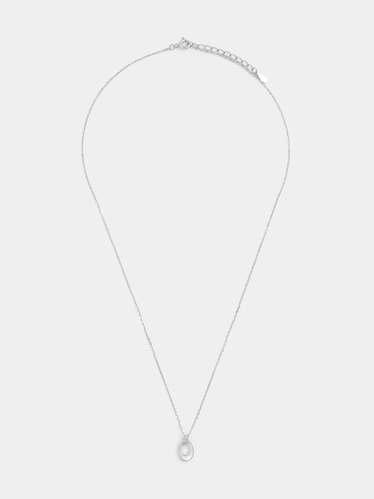 This stylish open oval disc pendant on a chain is expertly crafted in Sterling Silver. Material composition Sterling Silver Length 45cm Fibre content SILVER Material colour Rhodium Plated |