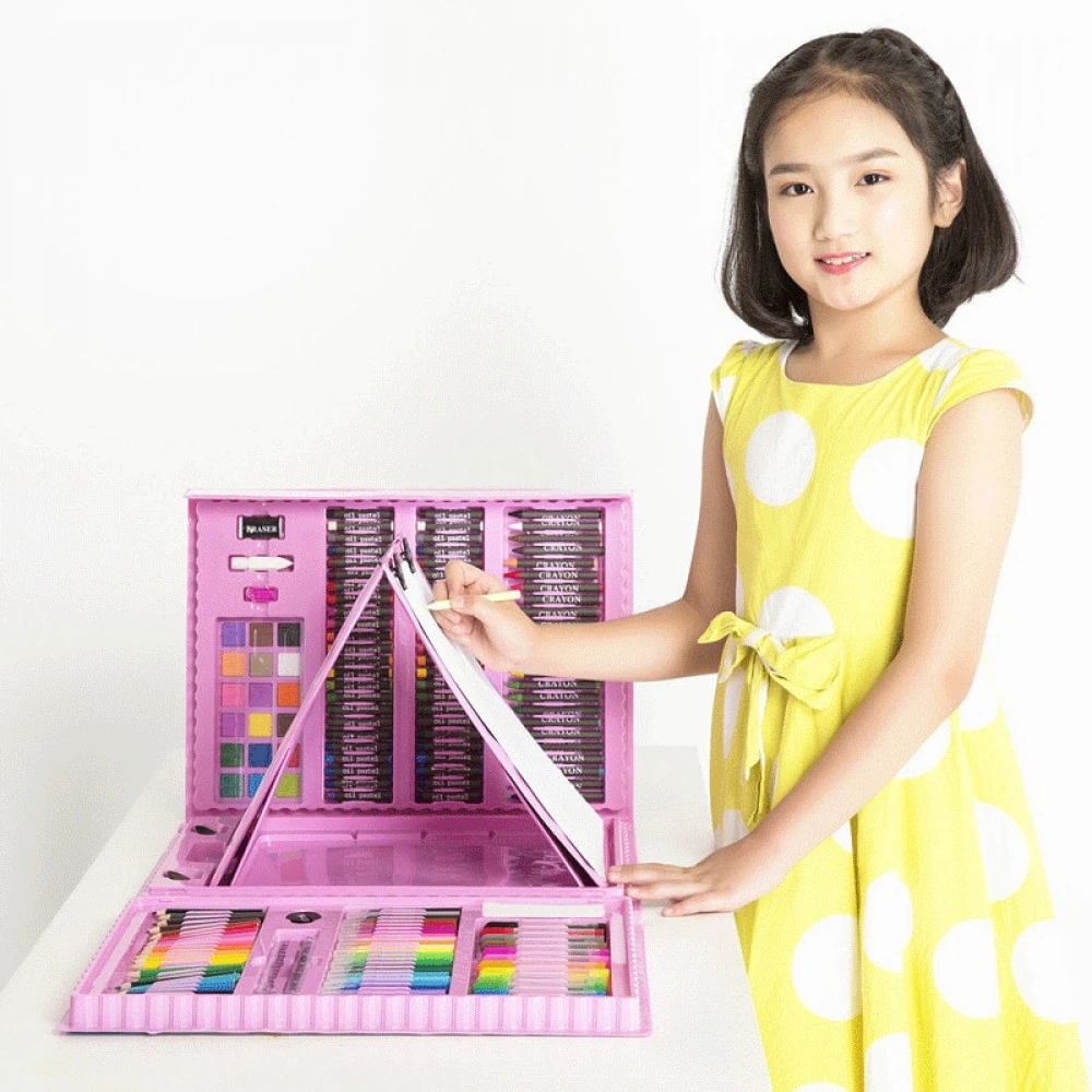 Super mega art set Start your childs great artistic abilities with this amazing 208 piece art set. the set comes in an easy to fold carry bag making it portable to carry anywhere included in package: 1 x carry case water colour paint markers colour pencils crayons drawing paper |