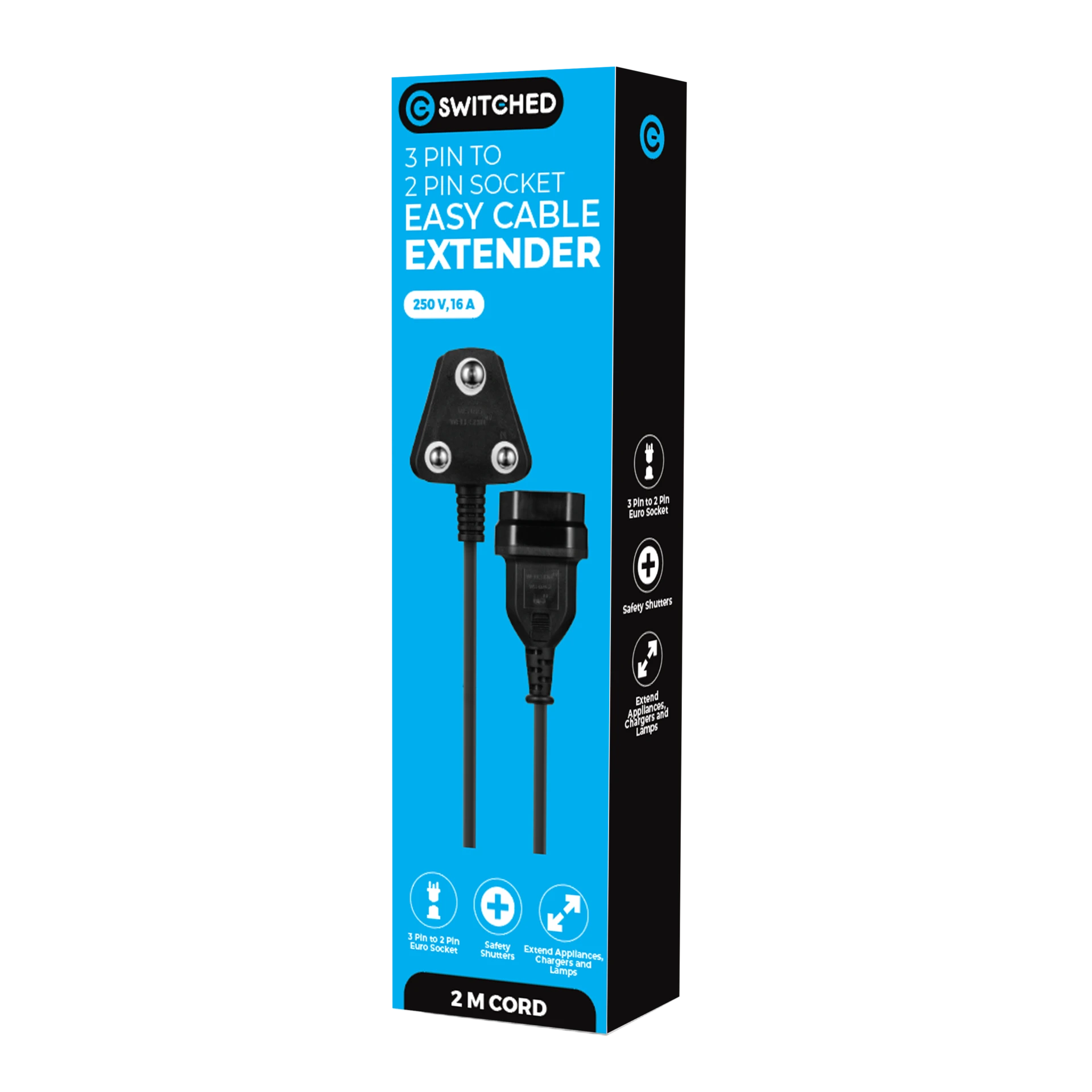 3 pin to 2 pin socket Safety shutters Extend appliances, chargers and lamps Daisy chain 1 Year Warranty Switched Easy Cable Extender Sa 3Pin To 2Pin Euro Socket 2m BlackExtend your reach effortlessly with the Switched Easy Cable Extender, designed to convert a 3-pin plug to a 2-pin Euro socket. This sleek black extender is perfect for powering appliances, chargers, and lamps with ease. Featuring built-in safety shutters, it ensures secure use while allowing you to daisy chain multiple devices for added convenience. With power management and a durable 2-meter length, this cable extender brings flexibility and safety to your home or workspace. |