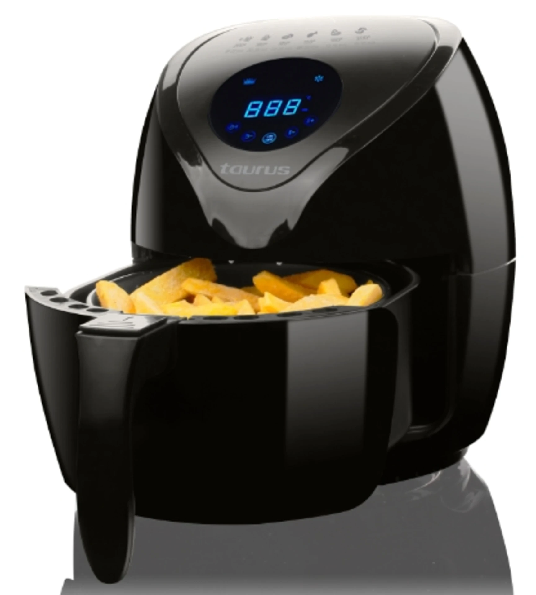 Digital Control Panel 2.6L Capacity Non-Stick Coated Fryer Basket Temperature Regulator Pilot Light 60 Minute Timer Black 1 Year Retail + 1 Year Extended Warranty Taurus Digital Air Fryer 2.6L 1400WTaurus introduces the Freidora Air digital Fryer. The Fredigora Air has an easy to use digital control panel. With its 2.6L basket and 60 min timer, healthier food has never been this easy to cook. |