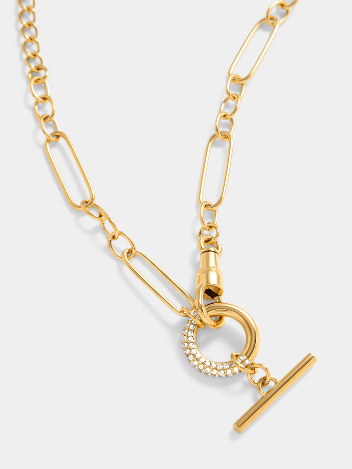 Expertly crafted in Gold Plated Stainless Steel, this stylish 19cm paperclip bracelet features a T-bar toggle accent glittering with pavé set Cubic Zirconia. All Tempo Jewellery is hypoallergenic, waterproof and durable, boasting a 1-year guarantee. Gemstone Cubic zirconia Material composition Stainless Steel Length 19cm Fibre content STAINLESS STEEL Stone colour Clear Material colour Yellow Gold |