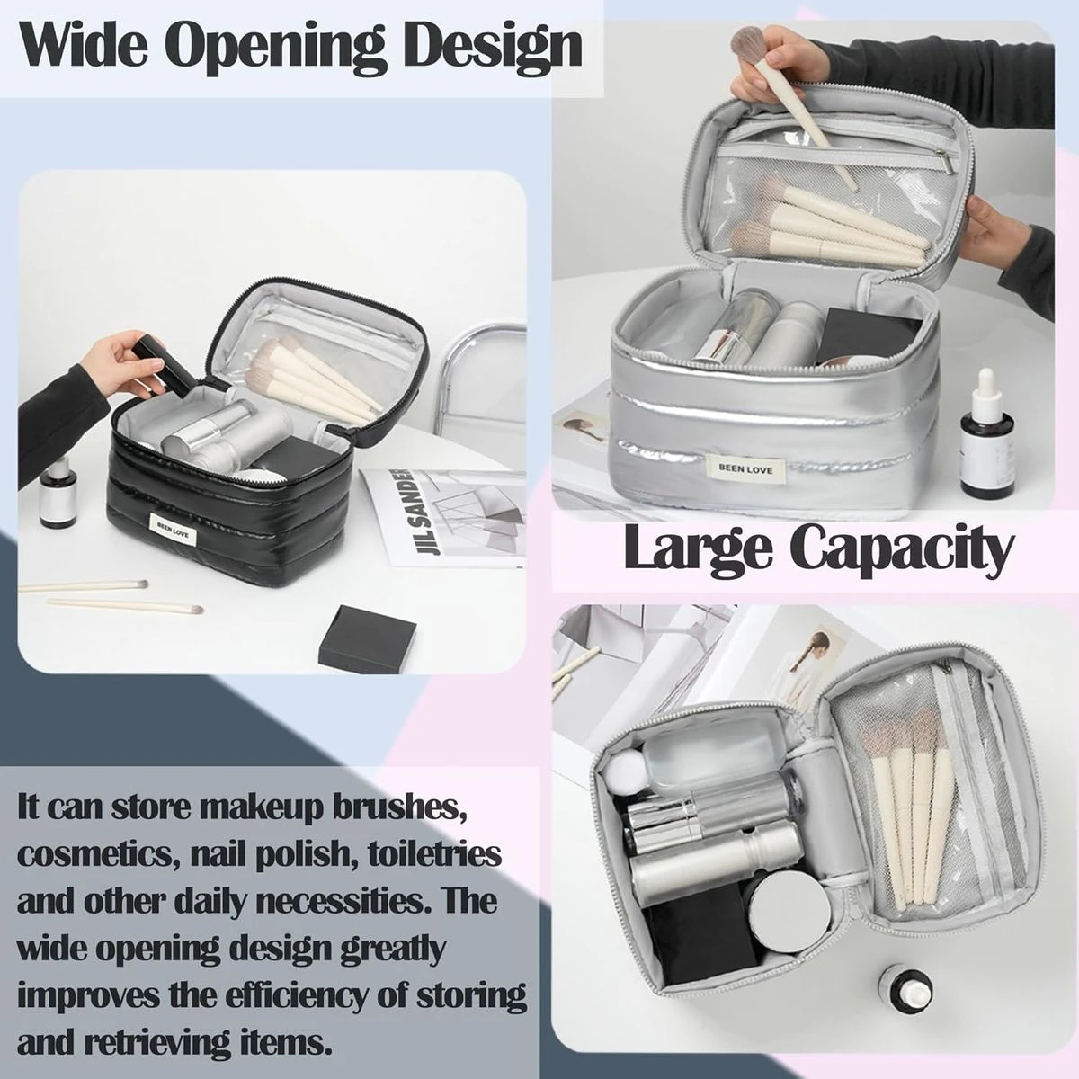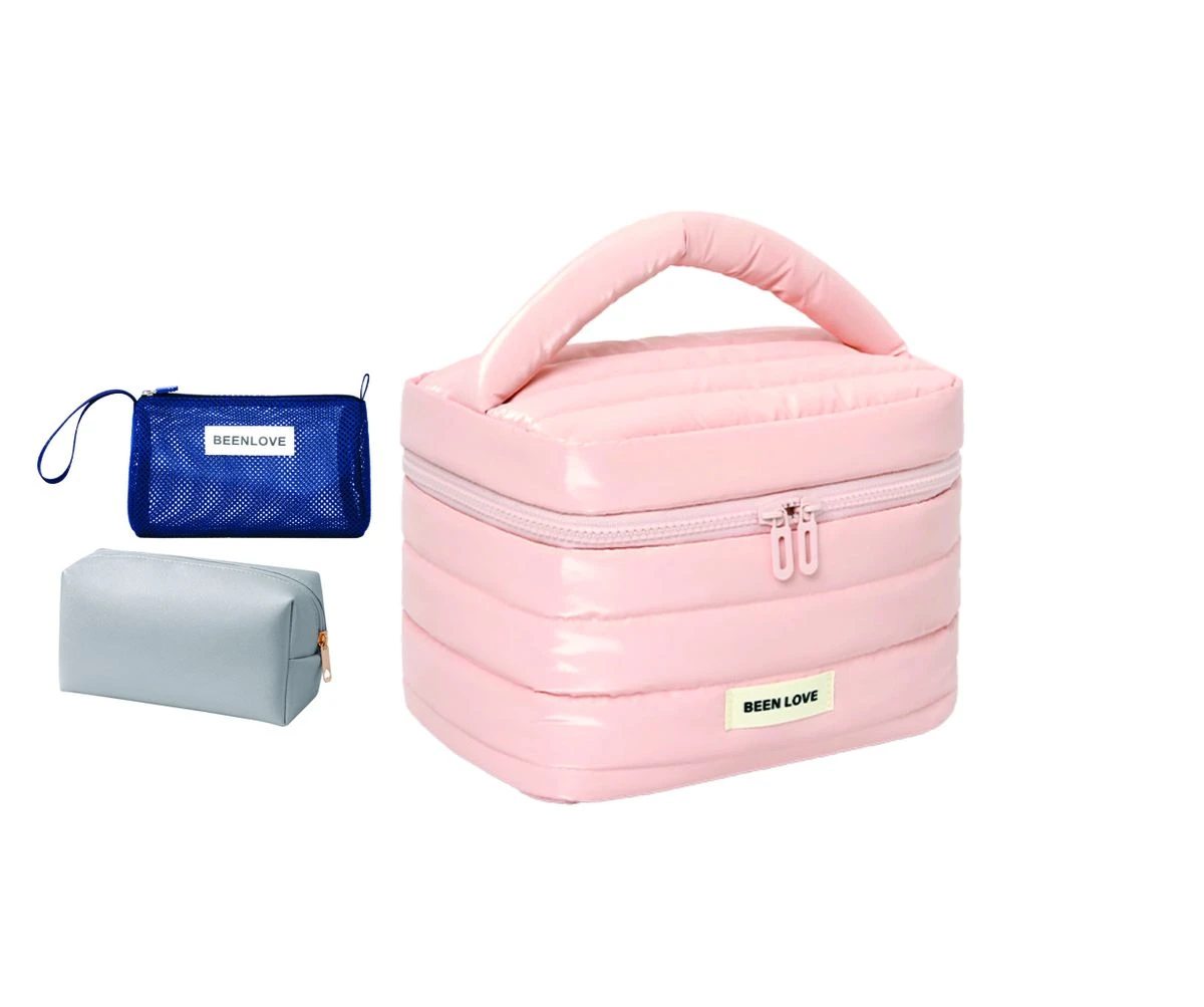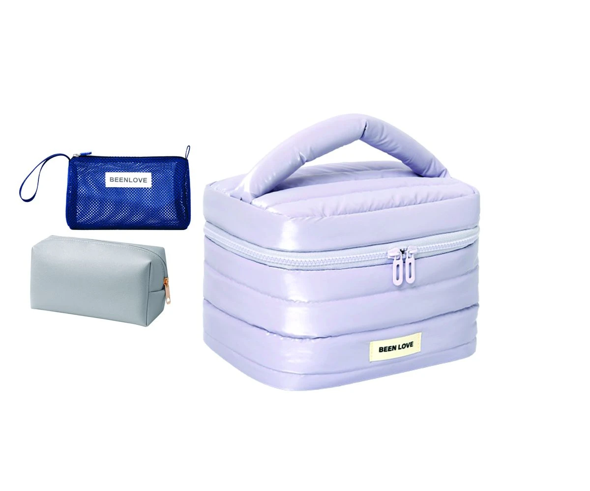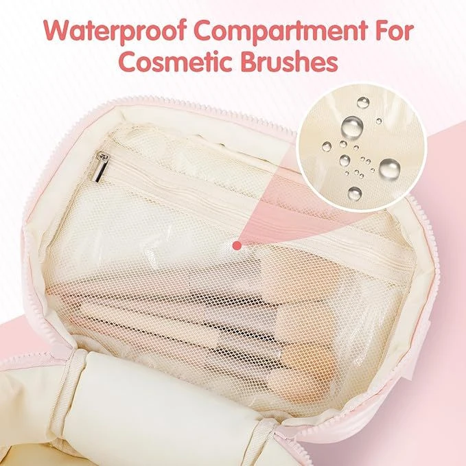 - Down jacket fabric, lightweight and waterproof: This bag is made of down jacket fabric, which is lightweight and easy to carry, easy to clean, allows you to quickly apply makeup after your daily commute or fitness workout, and has excellent waterproof and shock-absorbing properties, which can protect your cosmetics from moisture and cracking during outdoor activities or camping. Thanks to the use of quilting technology, the bag is long-lasting.