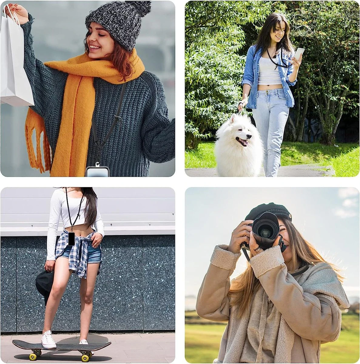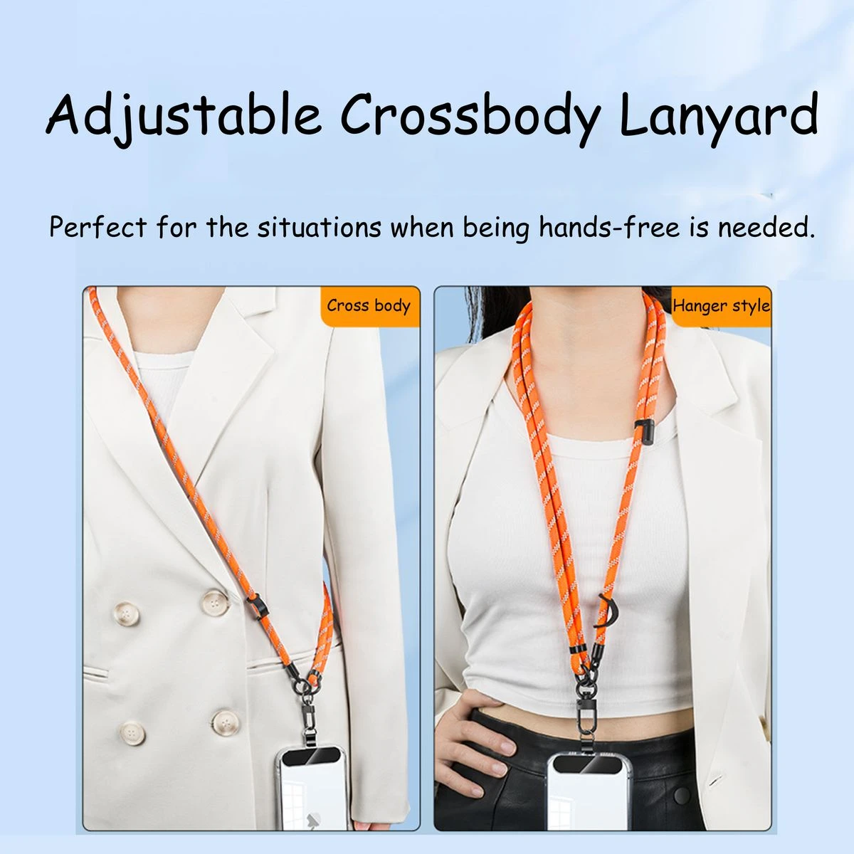 Unobstructed Charging and Accessibility : Our lanyard comes with two ultra-thin tear-proof non-adhesive tether tads that support corded and wireless charging, without the need for removal from your smartphone. Adjustable Length and Crossbody Application : The rope length of our phone lanyard is adjustable from 33 to 65 inches using two metal buckles, offering flexibility for comfortable crossbody wear. Universal Compatibility : Designed to fit the iPhone 15 Pro Max and other smartphones with a full-coverage case from 4.0 to 6.7 inches securely. Note: Not compatible with half-coverage phone cases. Anti-Theft Design : Our Golifyne Universal Phone Lanyard provides a secure holder with an anti-theft design, keeping your cell phone within your sight and preventing accidental drops or loss. Versatile and Stylish : Our phone lanyard includes an extra leather buckle, perfect for hanging sunglasses or AirPods. With its sleek design and functionality, it complements your iPhone while providing convenience on the go. KINDLY NOTE THAT OUR COLORS MAY DIFFER FROM THE ACTUAL PRODICT DUE TO THE LIGHTING CONDITIONS. What's in the box 1 x Universal Phone Lanyard 2 x Non-Adhesive Tether Tabs |