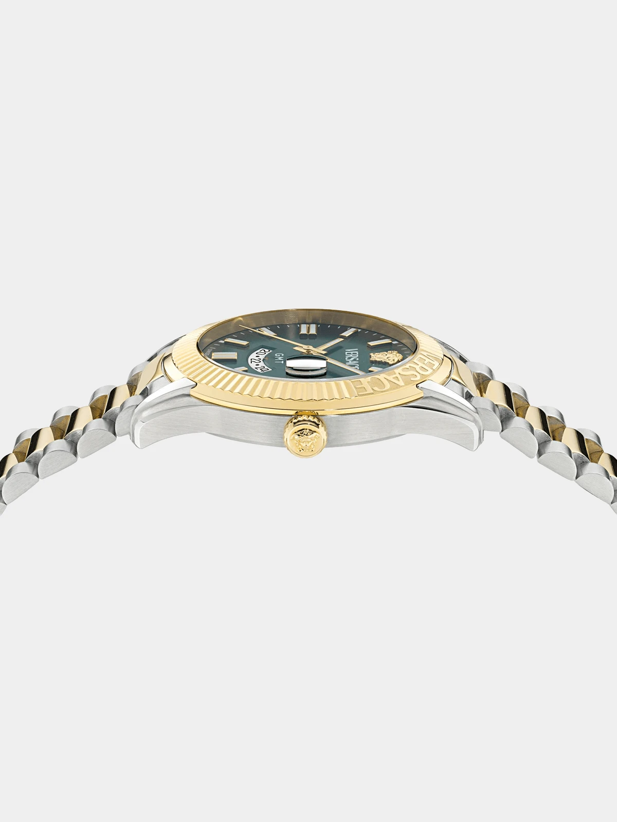 This collection features a sleek dial enriched with sunray dial and a 3d Medusa at 12h. The case is enriched with a GMT movement window at 6h and window date with magnificent glass at 3h. Guarantee/warrantee 2 Year International Warranty Material composition Stainless Steel Fibre content STAINLESS STEEL Waterproof Water Resistant Dial colour Green Strap colour Silver & Gold Material colour Silver & Gold Plated Watch case size 41mm Dial shape Round |
