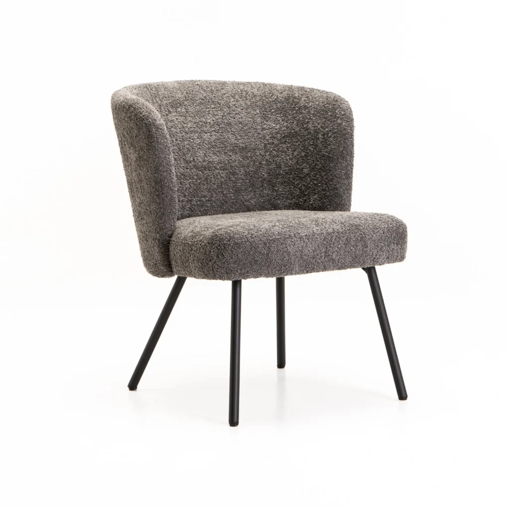 With its sculptural silhouette and inviting texture, the Vienna Fabric Chair brings a touch of modern elegance to any space. Upholstered in a soft, luxurious fabric with a rich, luxurious finish, it offers exceptional comfort and style. The gently curved backrest wraps around you for supportive seating, while the slim black powder-coated metal legs provide a clean, contemporary contrast. Perfect for in any room as a chic occasional chair. Additional Information:Material Frame : Metal Material Legs : Powder Coated Metal Legs Seat Construction : Foam |