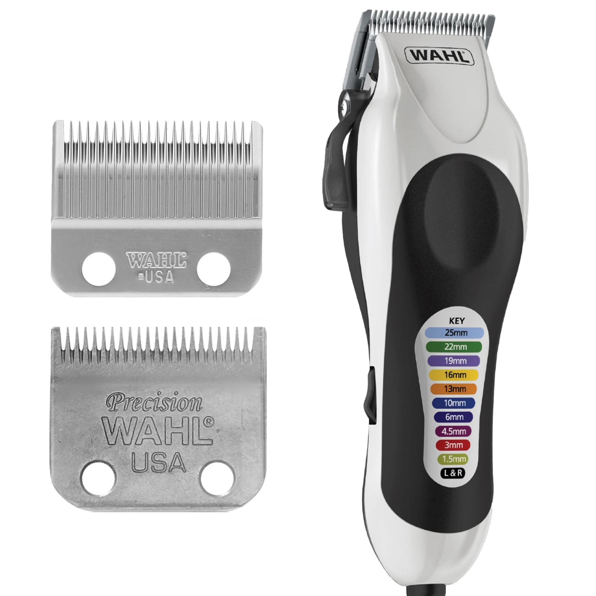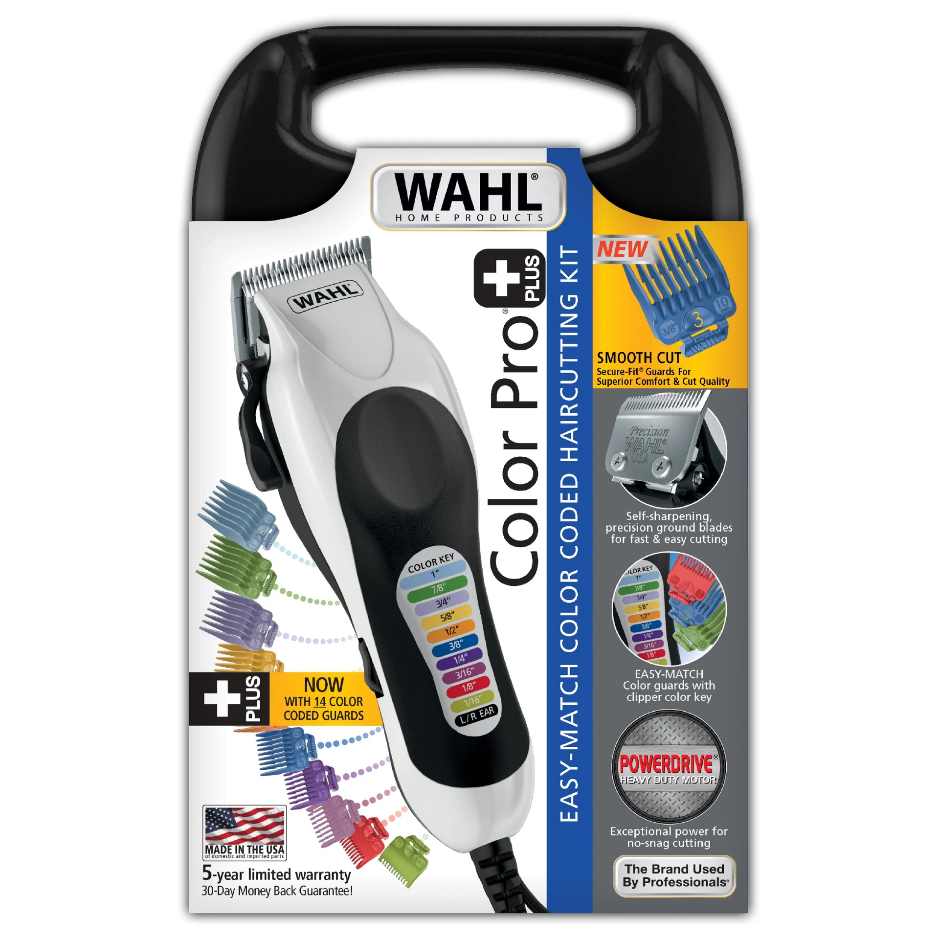Corded clipper for continuous power Powerful clipper with a taper lever High carbon precision steel blades Self-sharpening blades 14 Coloured guide combs Hard cover storage case Wahl Colour Pro Plus 23 PieceExperience professional-quality haircuts at home with the Wahl Colour Pro Plus 23 Piece clipper set. Designed for continuous power with its corded design, this powerful clipper features a convenient taper lever and self-sharpening high carbon precision steel blades for smooth, precise cuts every time. The set includes 14 vibrant colored guide combs that make it easy to customize your style and achieve the perfect length. Finished in sleek black, grey, and silver plastic, it comes with a hard cover storage case and a brush for easy maintenance. Perfect for salon-quality results in the comfort of your own space. |